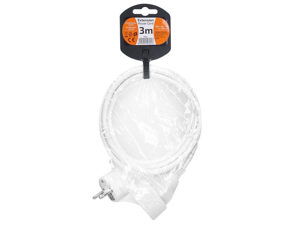 Kompaktný biely predlžovací kábel s dĺžkou 3 metre a jednou zásuvkou je ideálny na jednoduché predĺženie elektrickej energie v domácnosti, kancelárii alebo dielni. Vhodný na pripojenie samostatného zariadenia mimo dosahu pevnej zásuvky.