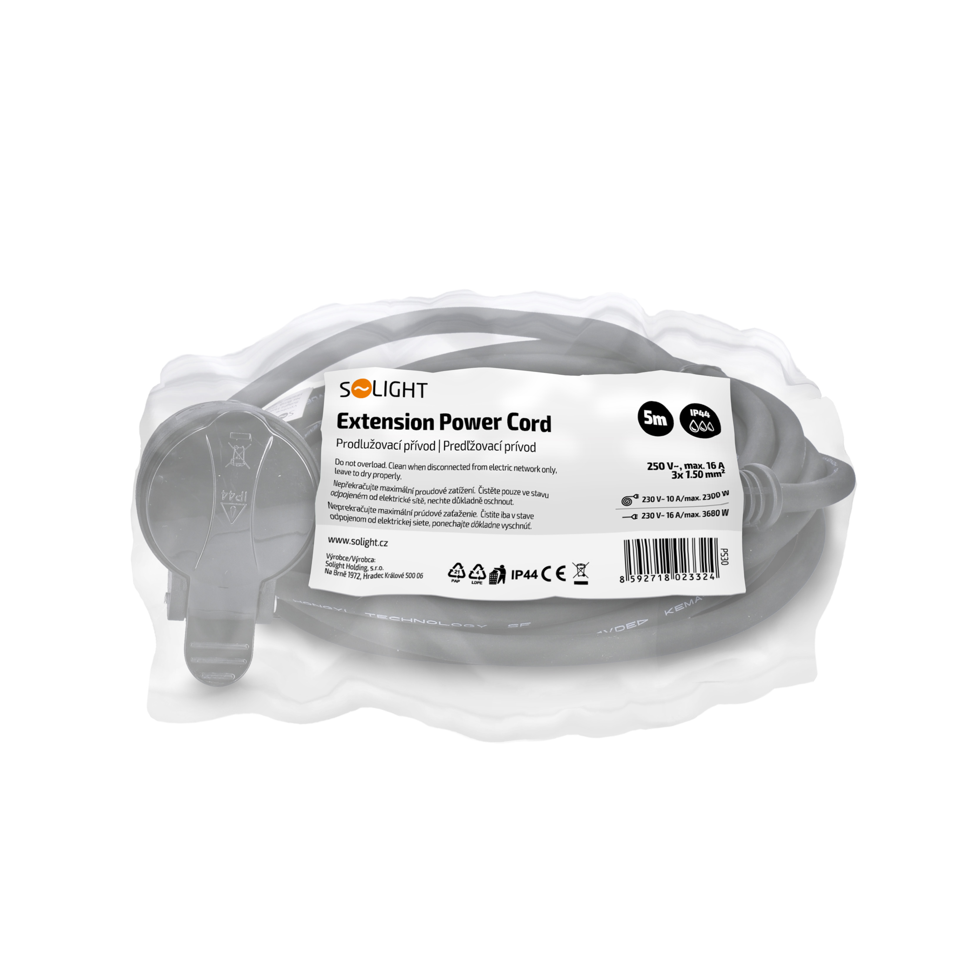 Prívod je navrhnutý pre maximálnu záťaž 3680 W, tzn. prúdové zaťaženie 16 A pri napätí v sieti 230 V~. Zaisťuje stabilný prenos energie pre bežné a náročné elektrospotrebiče aj na väčšiu vzdialenosť. Zásuvka je vybavená detskou poistkou pre maximálnu bezpečnosť.