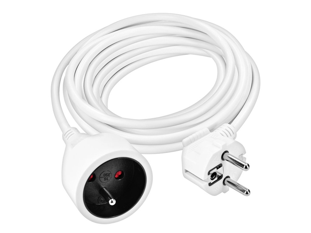 Kompaktný biely predlžovací kábel s dĺžkou 15 metrov a jednou zásuvkou je ideálny na jednoduché predĺženie elektrickej energie v domácnosti, kancelárii alebo dielni. Vhodný na pripojenie samostatného zariadenia mimo dosahu pevnej zásuvky.
