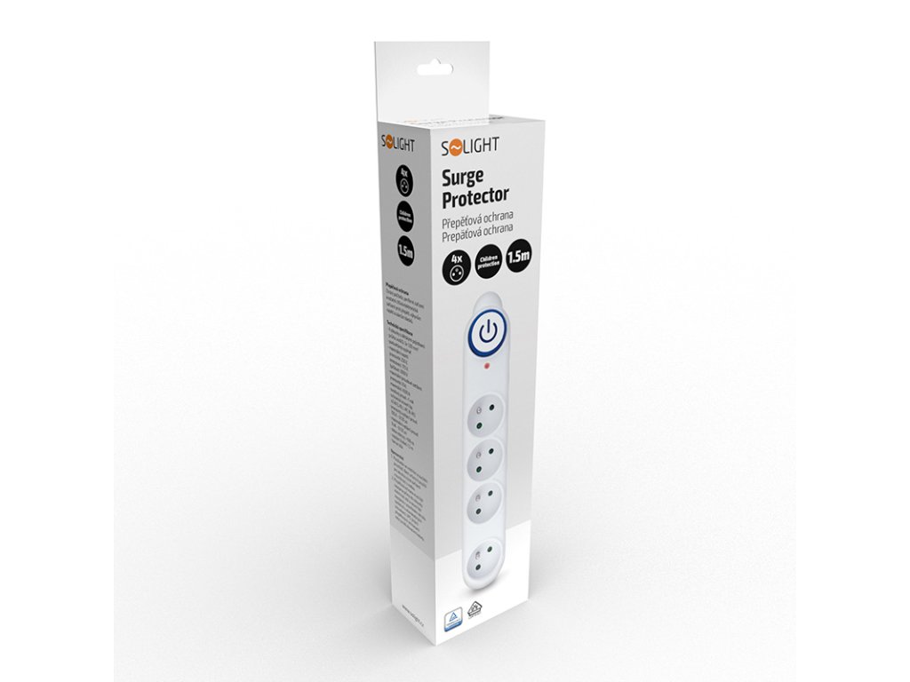 Solight prepäťová ochrana, 150J, 4 zásuvky, 1,5m, biela