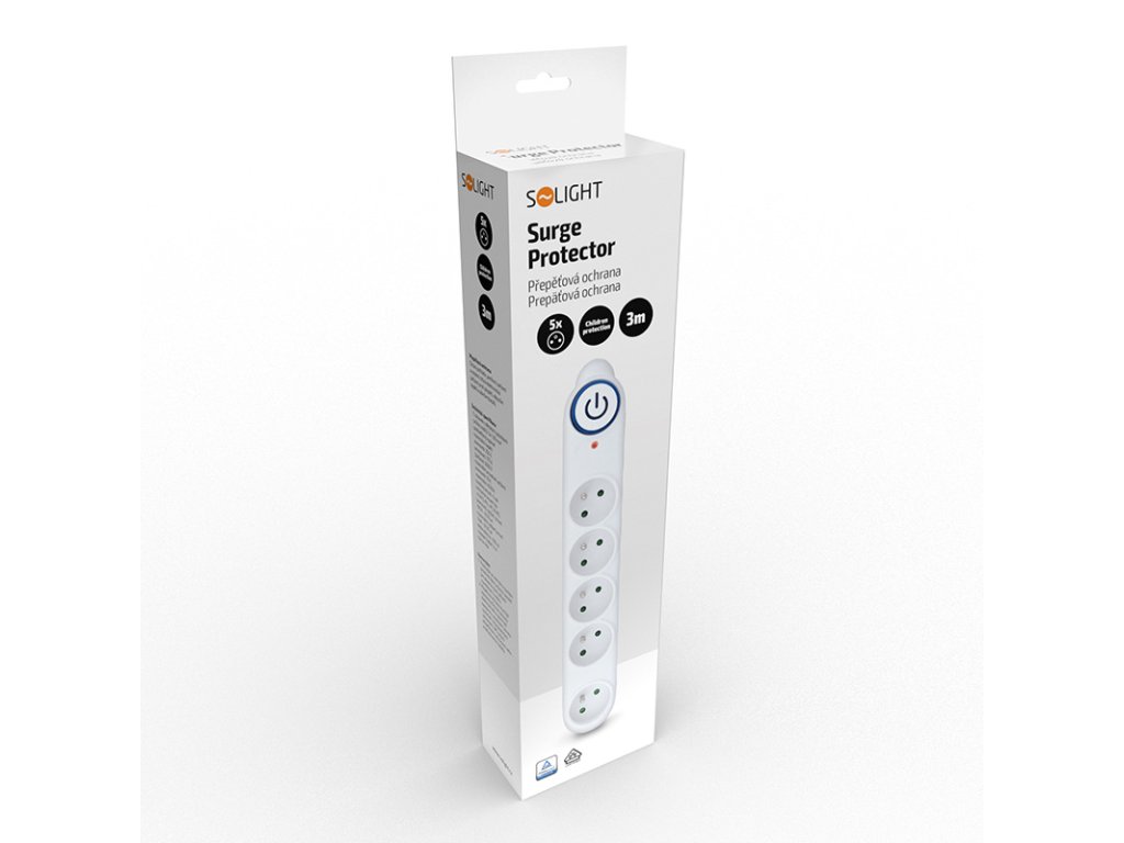 Solight prepäťová ochrana, 150J, 5 zásuviek, 3m, biela