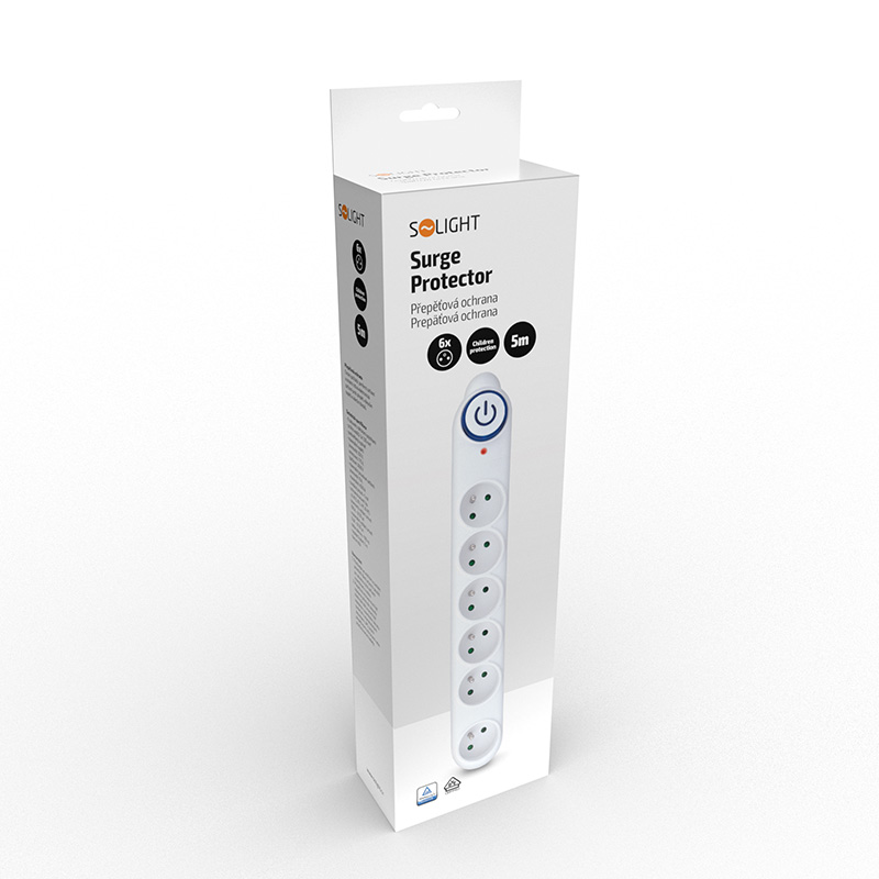 Solight prepäťová ochrana, 150J, 6 zásuviek, 5m, biela