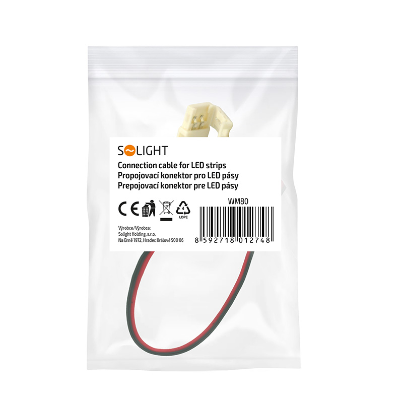 Solight prepojovací kábel pre LED pásy, 10mm zacvakávací konektor na oboch stranách, 1ks, sáčok