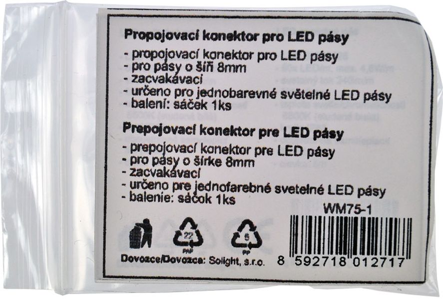 Solight prepojovací konektor pre LED pásy, 8mm, zacvakávacie, balenie 1ks, sáčok