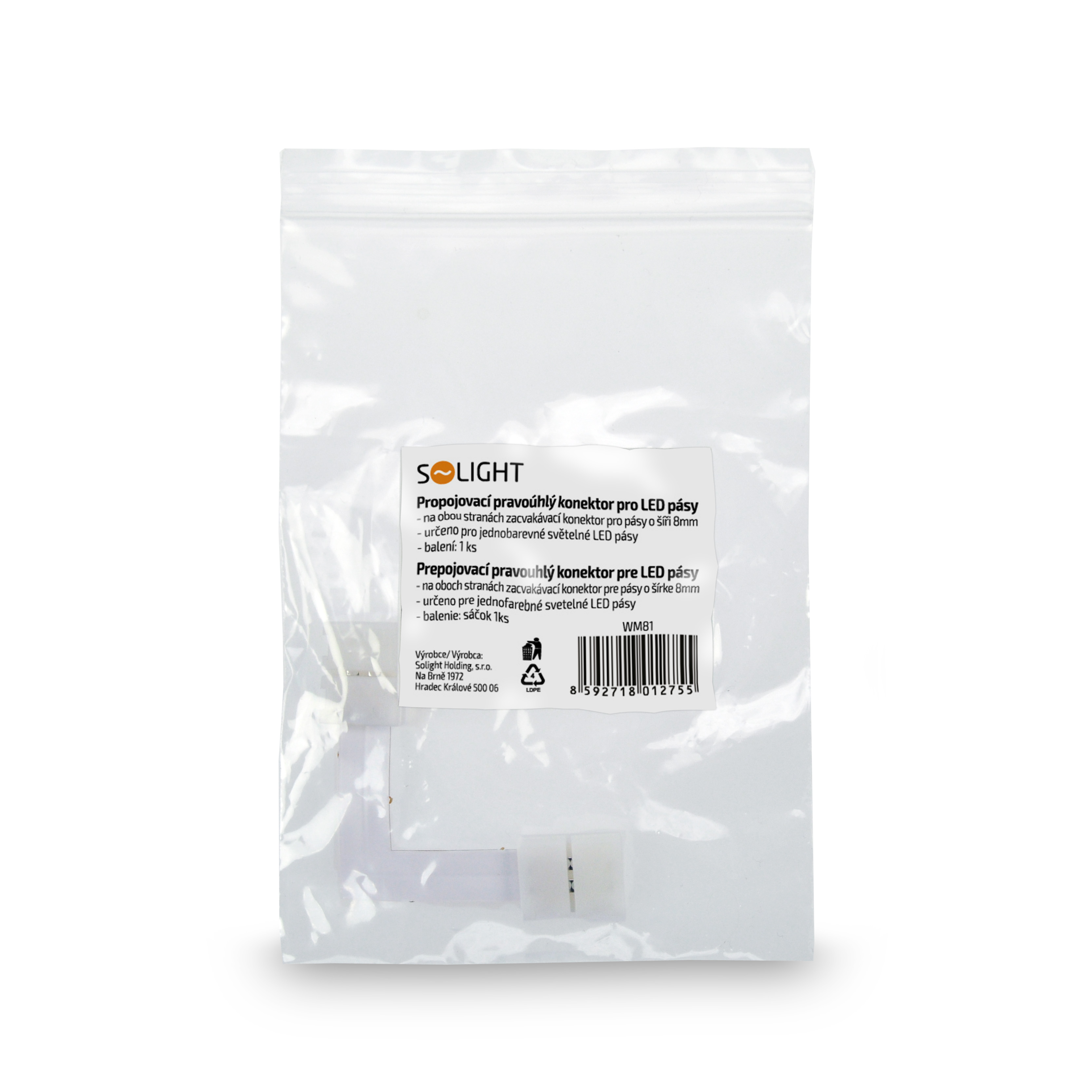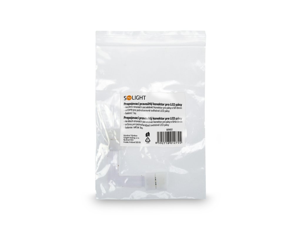 Solight prepojovací pravouhlý konektor pre LED pásy, 8mm zacvakávací konektor na oboch stranách, 1ks, sáčok