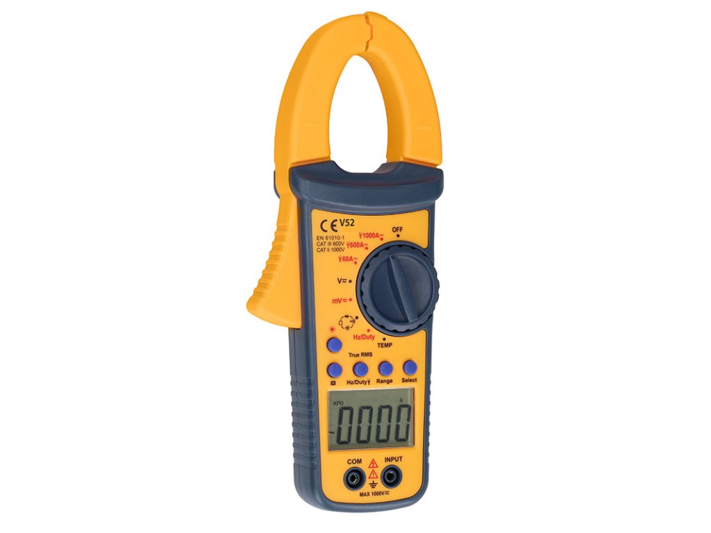 Digitálny multimeter s maximálnym zobrazením 6 000 hodnôt a podsvieteným LCD displejom (34 × 48 mm). Ponúka automatickú alebo manuálnu voľbu rozsahu a automatické vypnutie po 15 minútach nečinnosti. Meria jednosmerné napätie (0,1 mV - 1000 V), striedavé napätie (0,1 mV - 750 V, True-RMS), striedavý prúd (10 mA - 1000 A, True-RMS), odpor (0,1 ? - 60 M?), kapacitu (6 nF - 60 mF) a teplotu (-40 °C - 1370 °C). Funkcie podržania údajov, indikácie maximálnej a minimálnej hodnoty, frekvencie (0 Hz - 10 MHz) a inverzie (0,01 % - 99,9 %). Test diód, spojitosti so zvukovým signálom a meranie svorkovej frekvencie. Napájanie: 3x AAA 1,5 V batérie. Rozmery: 240 × 95 × 40 mm, hmotnosť: 342 g.
