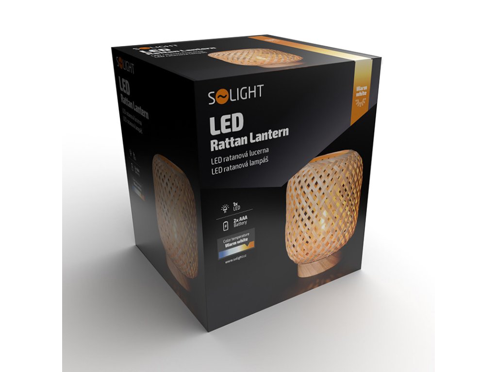 Solight ratanová LED lampáš s LED žiarovkou, teplá biela, 2x AAA, 19cm