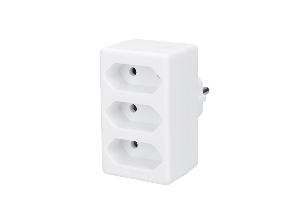 Táto jednoduchá rozbočka slúži na zapojenie troch neuzemnených spotrebičov s prívodnými šnúrami s plochou vidlicou. Lampička, set-top-box, router, apod.
