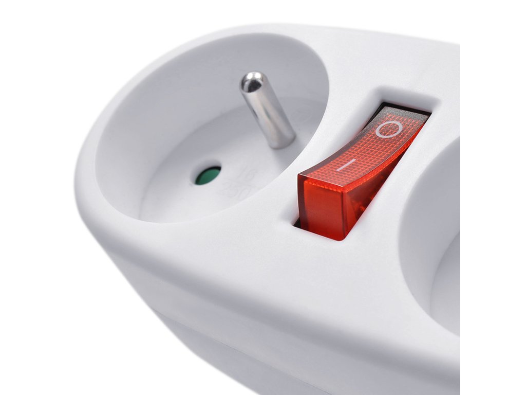 Rozbočka s vypínačom sa hodí všade tam, kde je z bezpečnostných dôvodov vhodné prerušiť napájanie spotrebiča pri odchode alebo dlhšej prestávke v používaní. Vypínač umiestnený medzi zásuvkami znižuje výšku rozbočky a je možné ju tak umiestniť aj do tesných priestorov. Dve zásuvky zvládnu celkovú záťaž až 3680 W a umožní pripojiť akýkoľvek spotrebič v kuchyni, obývačke alebo dielni. Zásuvky sú navyše vybavené detskými poistkami, čo zaisťuje bezpečnú prevádzku aj v domácnostiach s deťmi. Vďaka kompaktnému prevedeniu nezaberie zbytočne miesto.