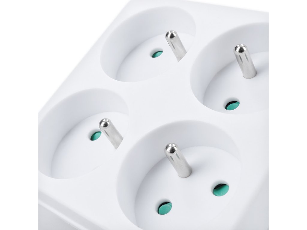 Štyri zásuvky v minimalistickom tele zvládnu celkovú záťaž až 3680 W a umožnia pripojiť bežné spotrebiče v obývačke, spálni alebo pracovni. Televízia, set-top-box, router, apod. Vďaka natočeniu horných zásuviek je možné ľahko manipulovať s prívodnými šnúrami v spodných zásuvkách. Všetky káble smerujú smerom dole a netrčia rôzne v priestore. Zásuvky sú navyše vybavené detskými poistkami, ktoré zaistia bezpečnú prevádzku aj v domácnostiach s deťmi. Vďaka kompaktnému prevedeniu nezaberie zbytočne miesto.