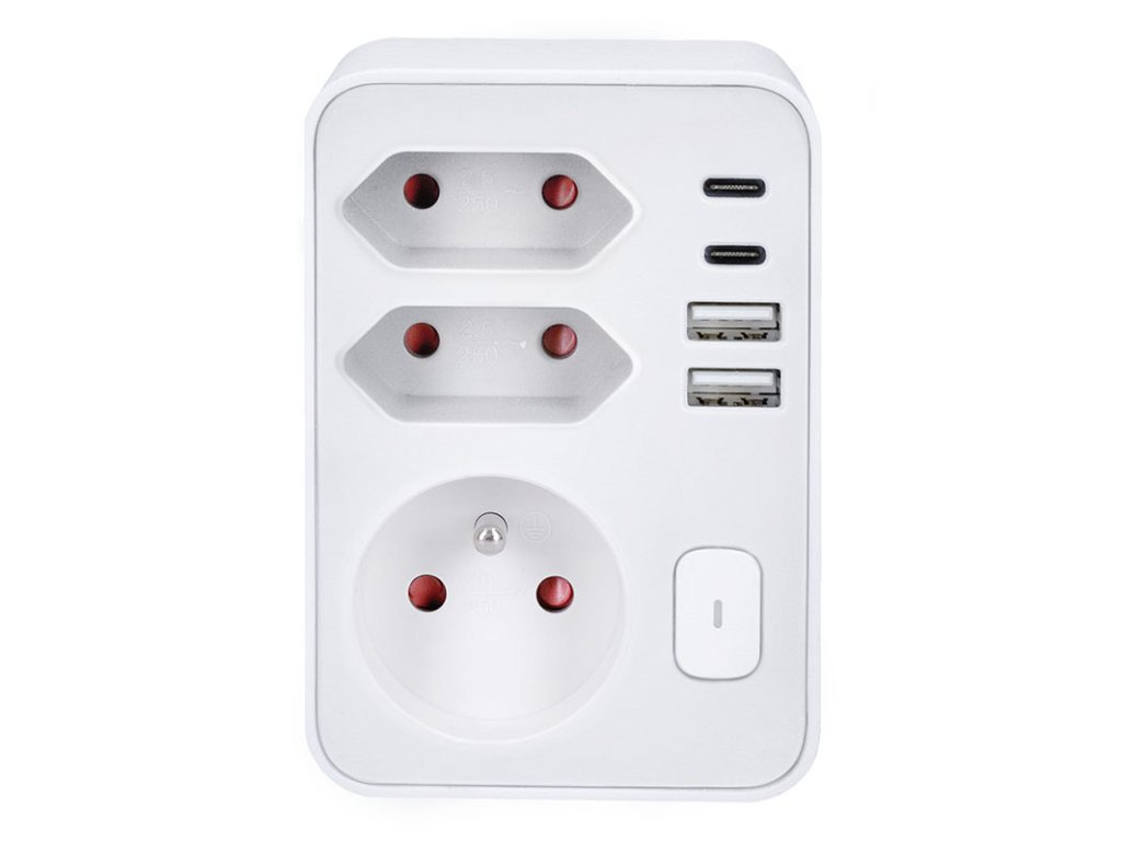 Tri zásuvky (1× 16 A + 2× 2,5 A) zvládnu celkovú záťaž až 3680 W a umožnia pripojiť bežné spotrebiče v obývačke, spálni alebo pracovni. Zásuvky sú navyše vybavené detskými poistkami, čo zaisťuje bezpečnú prevádzku aj v domácnostiach s deťmi. Vďaka dvom USB-A a dvom USB-C portom môžete pohodlne nabíjať až štyri zariadenia súčasne. Power Delivery (PD) technológia výrazne skracuje dobu, počas ktorej musí byť prístroj v nabíjačke. Perfektný pre všetku USB elektroniku a váš čas.