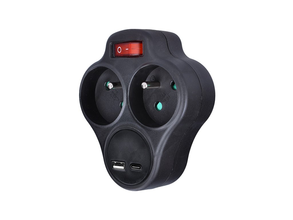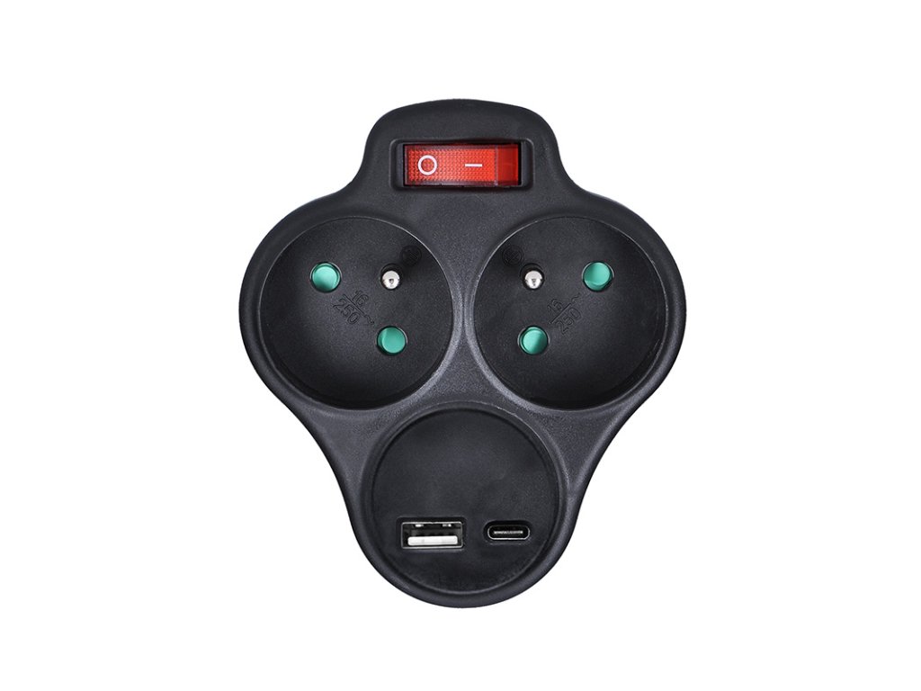 Rozbočka s vypínačom sa hodí všade tam, kde je z bezpečnostných dôvodov vhodné prerušiť napájanie spotrebiča pri odchode alebo dlhšej prestávke v používaní. Dve zásuvky zvládnu celkovú záťaž až 3680 W a umožnia pripojiť akýkoľvek spotrebič v kuchyni, obývačke, spálni alebo dielni. Vďaka natočeniu horných zásuviek je možné ľahko manipulovať s USB káblami v spodnej zásuvke. Oba káble spotrebičov smerujú smerom dole a netrčia rôzne v priestore. Zásuvky sú navyše vybavené detskými poistkami, čo zaisťuje bezpečnú prevádzku aj v domácnostiach s deťmi. Vďaka USB-A a USB-C portom môžete pohodlne nabíjať aj dve zariadenia súčasne – s celkovým výkonom až 17 W. Perfektné pre všetku USB elektroniku.