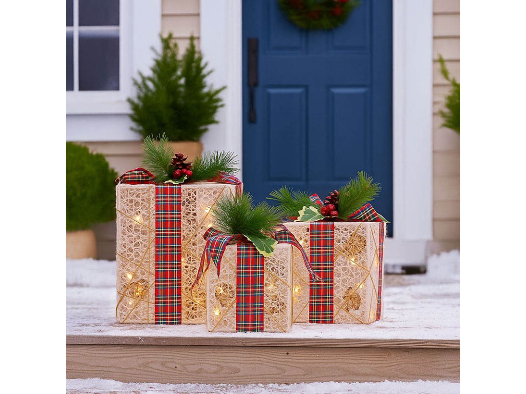Rozjasnite svoj domov aj záhradu kúzelnou sadou troch dekoratívnych vianočných darčekov s LED osvetlením. Tieto farebné svietiace dekorácie vytvoria útulnú sviatočnú atmosféru a stanú sa neprehliadnuteľným prvkom vašej vianočnej výzdoby.