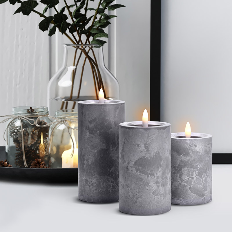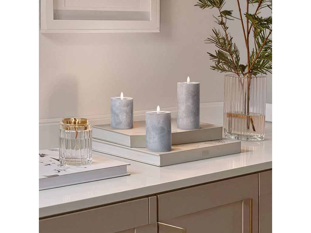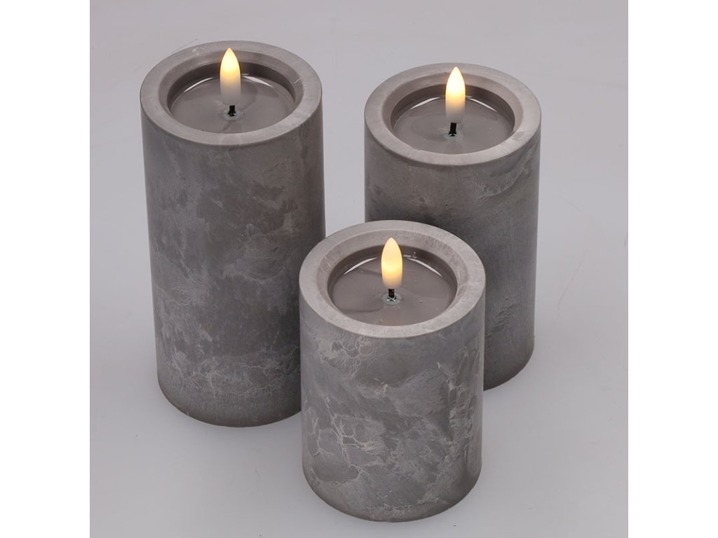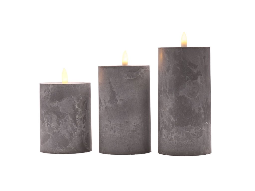 - sada LED sviečok s prirodzene blikajúcim plameňom a dekorom šedého mramoru