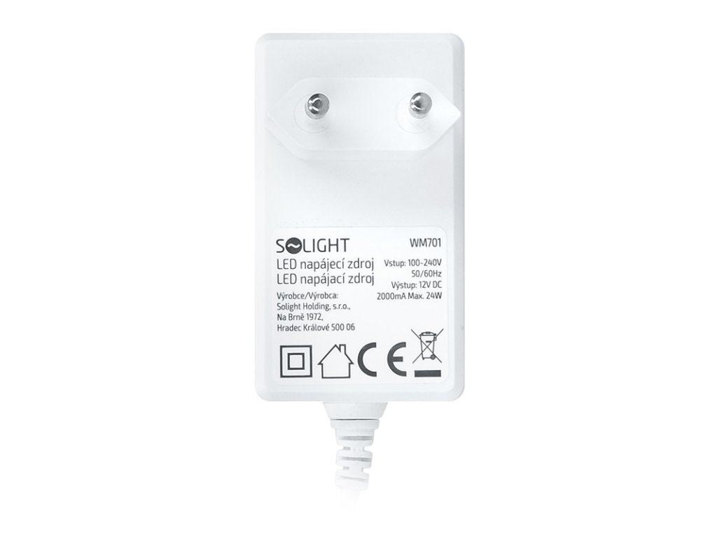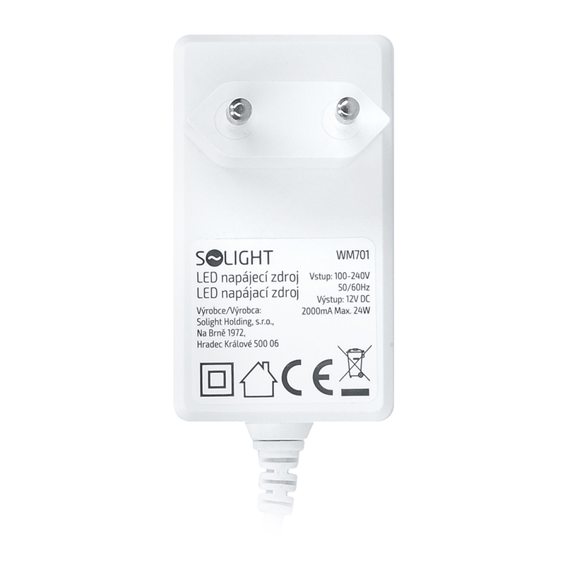 Solight sieťový adaptér pre LED pásiky, 230V - 12V, 2A, 24W, biela farba