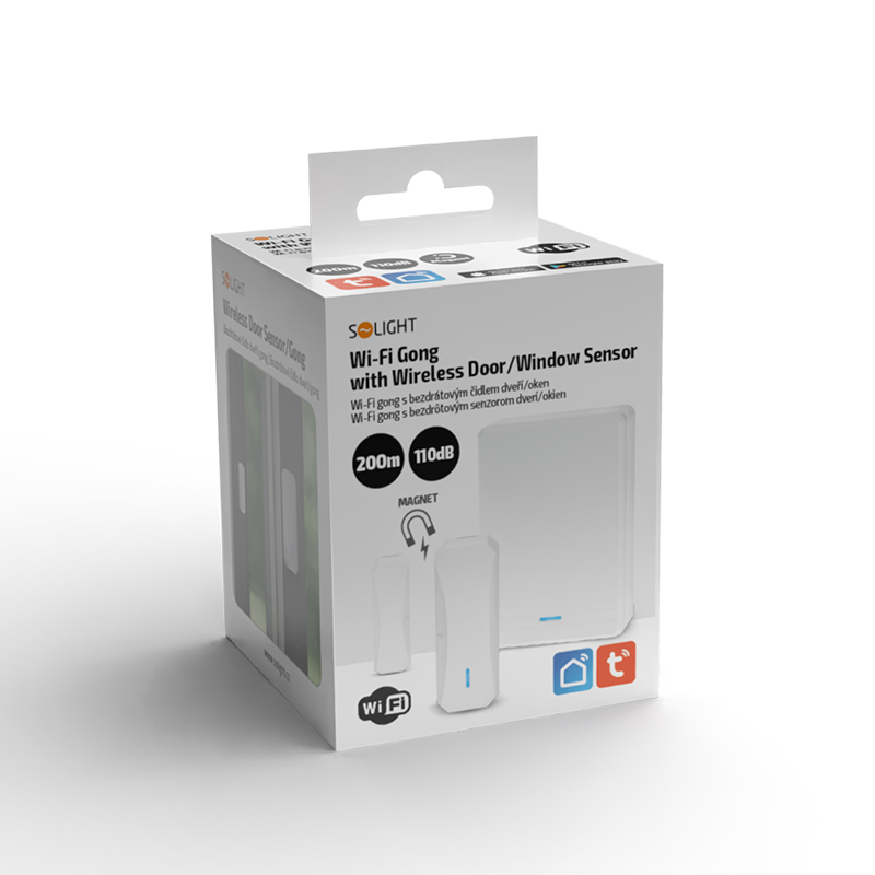 Táto varianta bezdrôtového gongu ponúka pokročilé možnosti vďaka pripojeniu k Wi-Fi sieti. Po rozpojení magnetických kontaktov dôjde nielen k spusteniu akustického signálu, ale aj k odoslaniu oznámenia do mobilnej aplikácie. Vďaka kompatibilite s platformami Tuya / Smart Life môžete mať plnú kontrolu nad zariadením priamo zo svojho telefónu.
