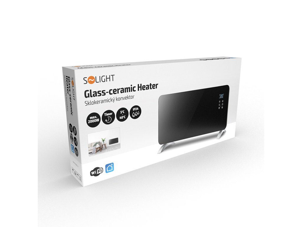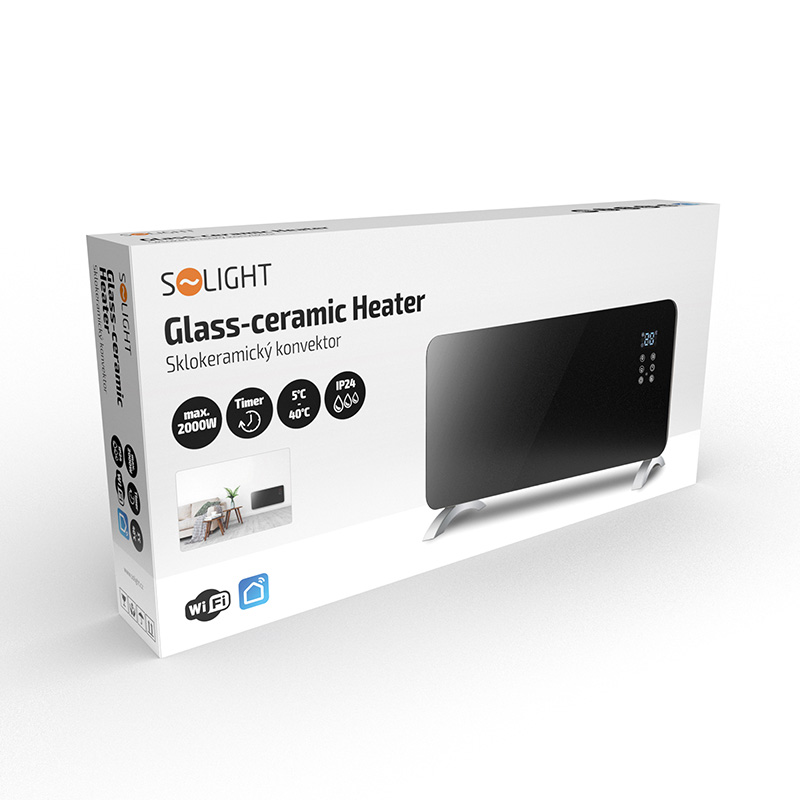 Solight teplovzdušný konvektor sklokeramický 2000W, WiFi, LCD, nastaviteľný termostat, časovač