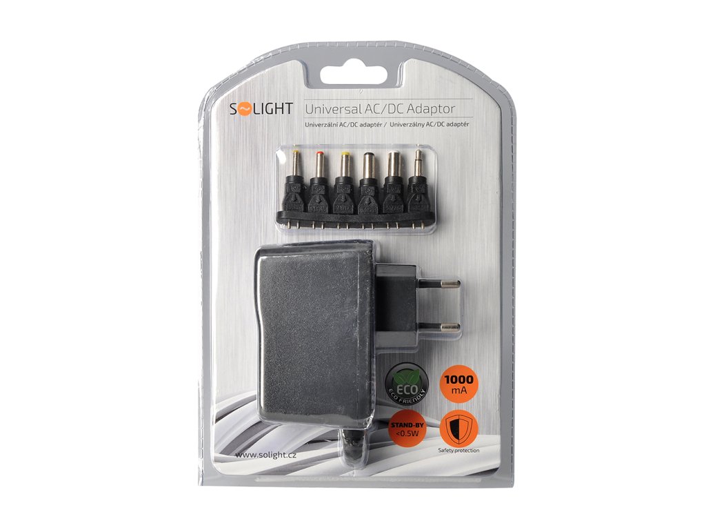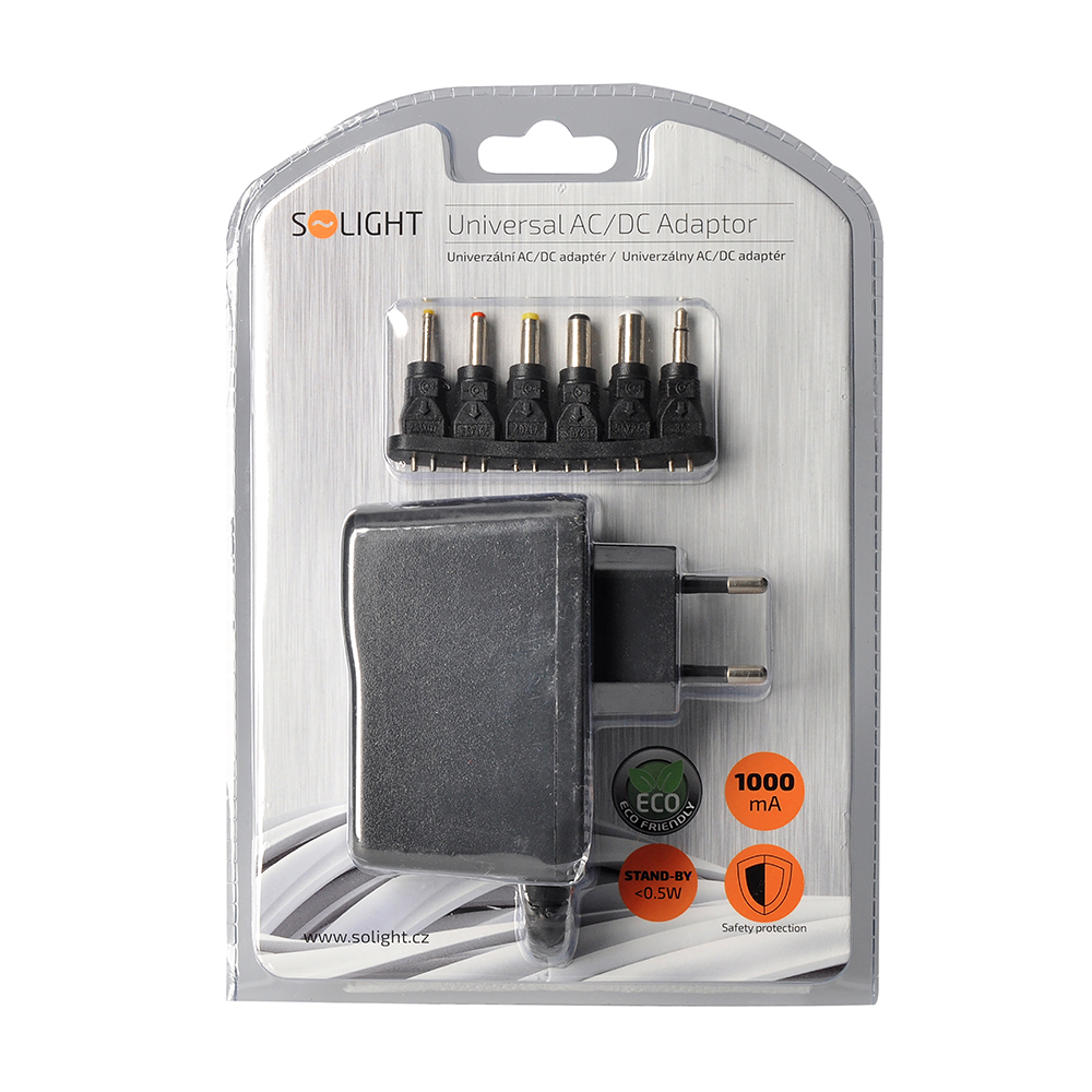 Solight univerzálny sieťový adaptér 1000mA, stabilizovaný, výmenné konektory