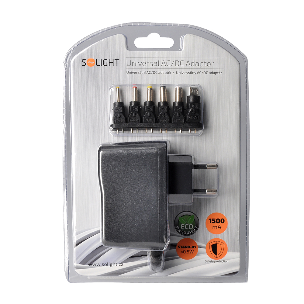 Solight univerzálny sieťový adaptér 1500mA, stabilizovaný, výmenné konektory