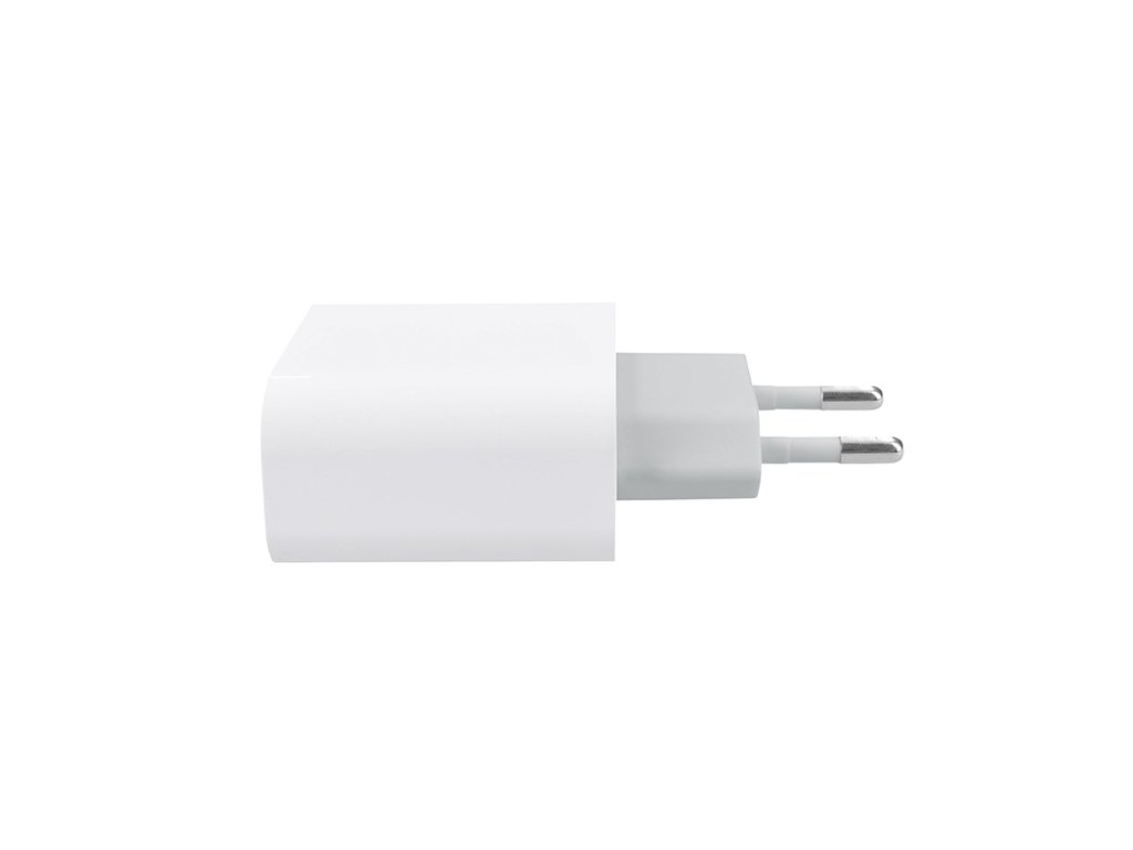 Univerzálny napájací adaptér USB-C s výkonom 20 W na rýchle nabíjanie PD. Vstup: AC 100 - 240V, 50/60Hz, max. 0,6A. Výstup: DC 5V/3A, 9V/2,22A, 12V/1,66A, 20W max. Ochrana proti skratu a nadprúdová ochrana. Rozmery: 42x27x79mm. Farba: biela.