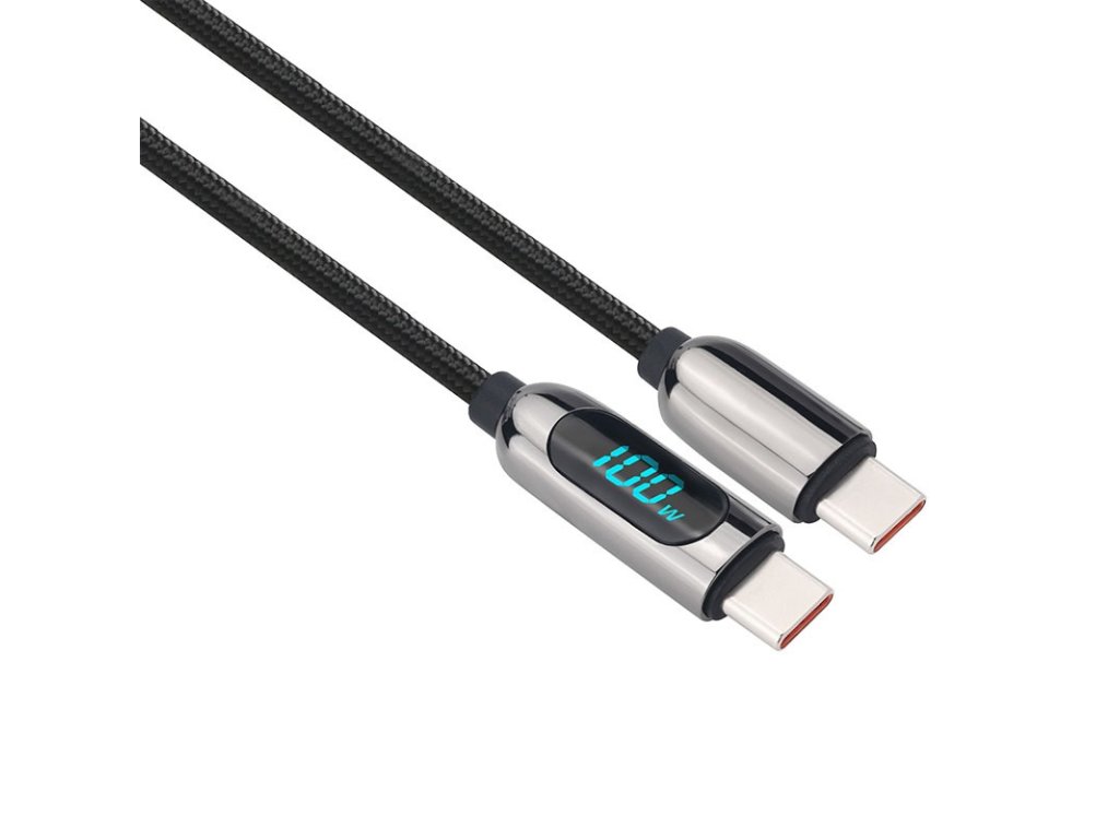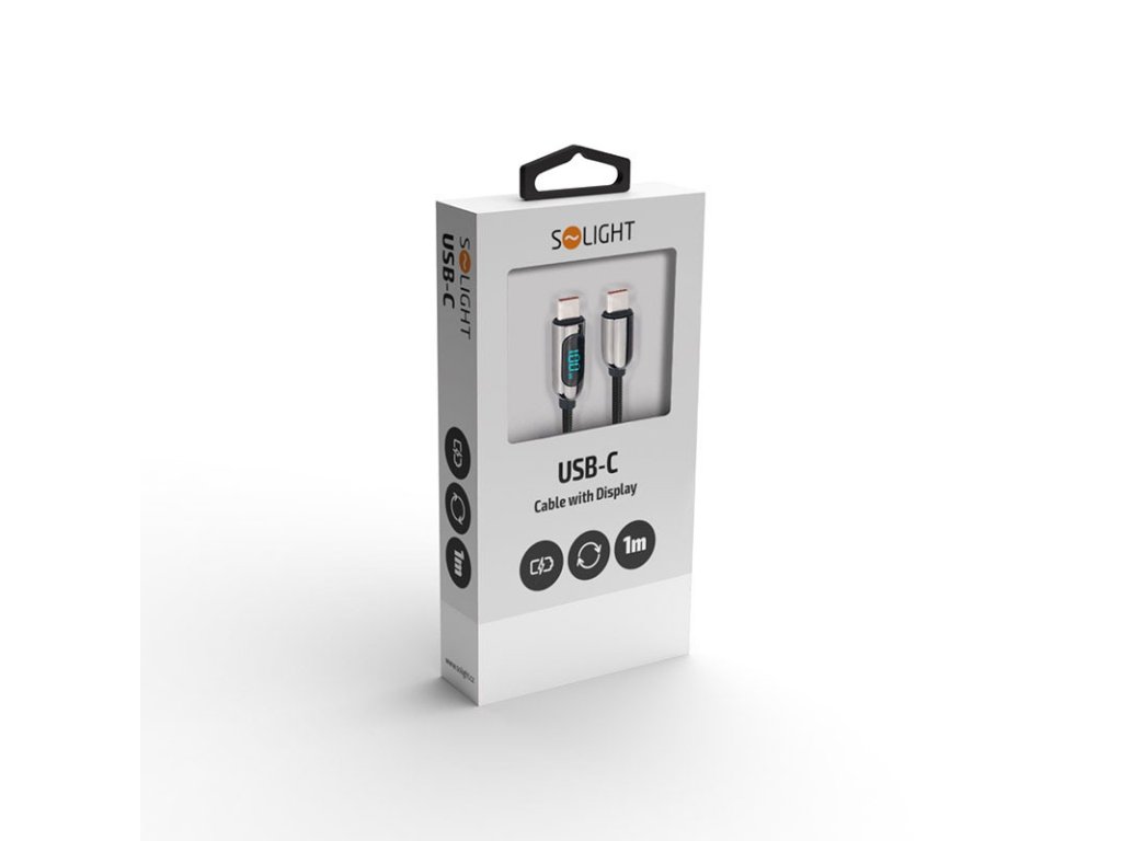 Solight USB-C kábel s displejom, USB-C konektor - USB-C konektor, 100W, 1m