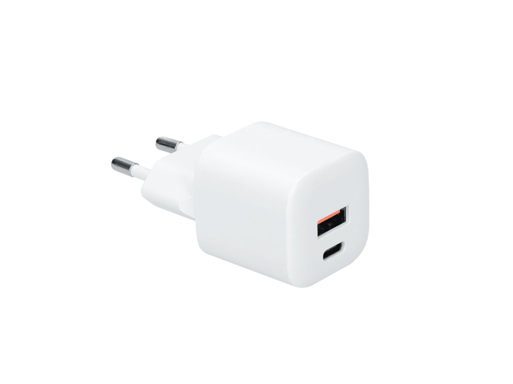Rýchlonabíjačka USB-C a USB-A 20W PD GaN s dvoma výstupmi na efektívne nabíjanie. Vstup: AC 110-240 V, 0,5 A, 50-60 Hz. Výstupy: USB-C 5V3A, 9V2,2A, 12V1,67A; USB-A 5V3A, 9V2A, 12V1,5A; USB-A+C 5V3A. Farba: biela. Kompaktná nabíjačka ideálna na rýchle a bezpečné nabíjanie viacerých zariadení súčasne.