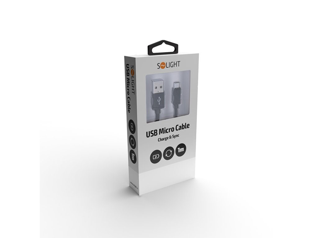 Solight USB kábel, USB 2.0 A konektor - USB B micro konektor, blister, 1m