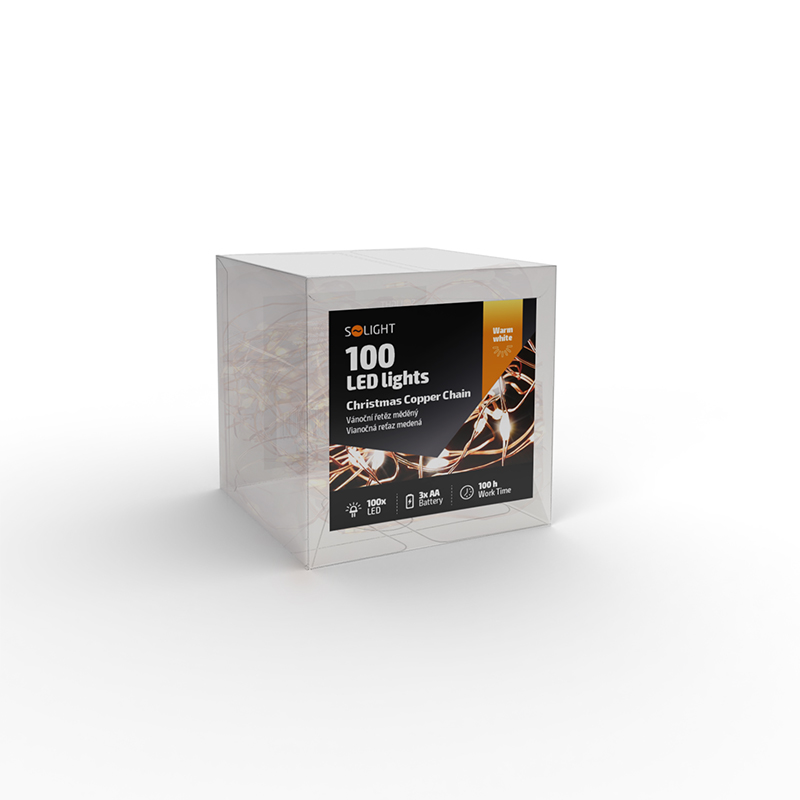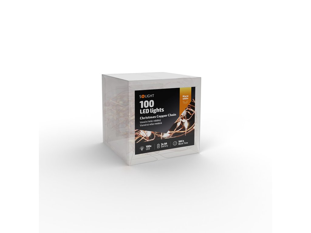 Solight vianočná reťaz medená, 100x mini LED, 10m, 3 x AA, teplé svetlo