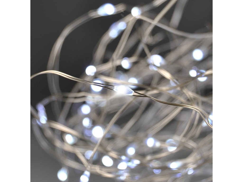 Reťaz je dlhá 3 metre, je napájaná tromi batériami AA (nie sú súčasťou balenia) a v závislosti od kvality batérií vydrží svietiť až 144 hodín. Vďaka stupňu krytia IP20 je vhodná na použitie v interiéri. Strieborný drôt pôsobí veľmi jemne a nerozptyľuje pozornosť, čo umožňuje kreatívne zdobenie v rôznych priestoroch. Balenie v PVC krabici je praktické a elegantné.
