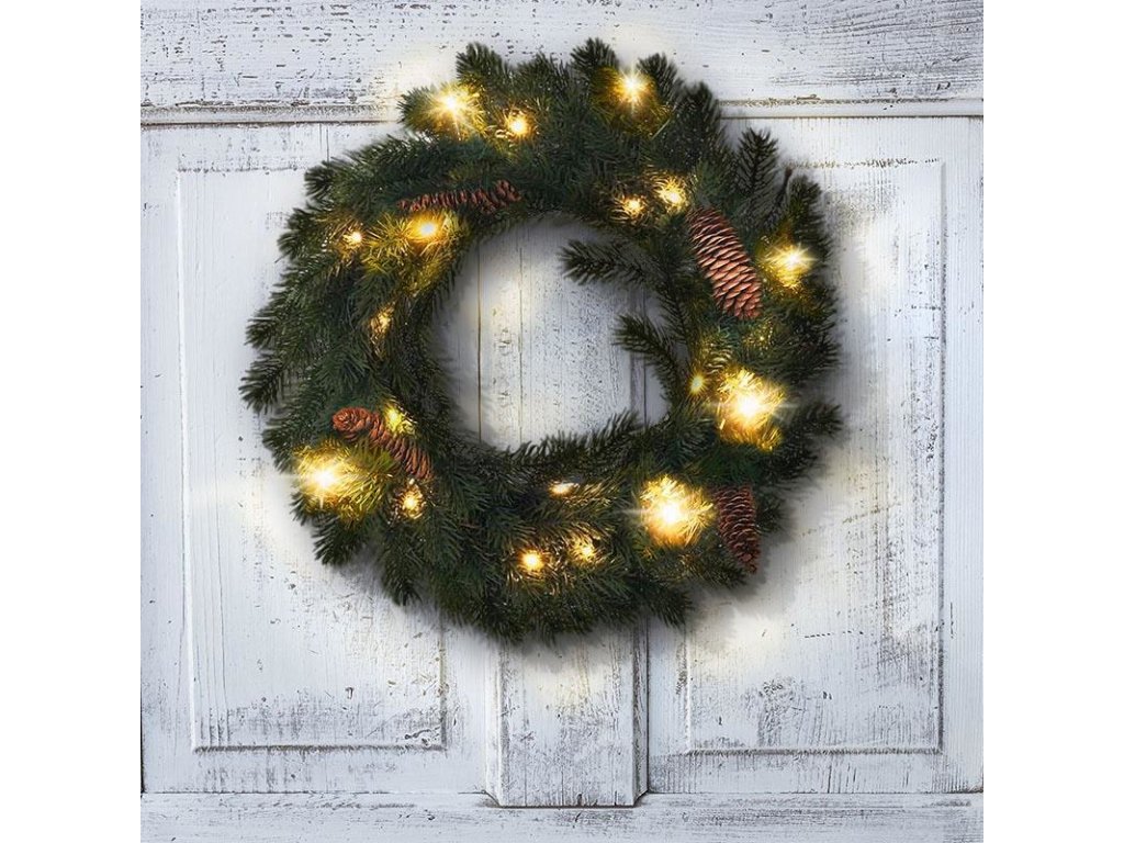 Veniec je napájaný 3x batériami AA (nie sú súčasťou balenia) a ponúka tri režimy: zapnutý, vypnutý alebo automatický časovač 6h/18h. S krytím IP44 je vhodný na vonkajšie aj vnútorné použitie - pokojne si ho zaveste na vchodové dvere. Životnosť batérií je približne 100 hodín. Dodáva sa vo farebnej darčekovej škatuľke. Veniec kombinuje klasický vzhľad s moderným komfortom - bez kábla, s dlhou životnosťou a jednoduchým používaním.