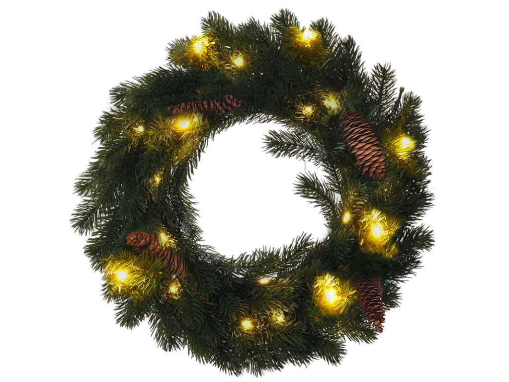 Klasický vianočný veniec s priemerom 40 cm a integrovaným LED osvetlením je ideálnou voľbou na ozdobenie dverí, stola alebo steny. Obsahuje 15 LED diód v teplej bielej farbe, ktoré vytvárajú útulnú a slávnostnú atmosféru. Zelené vetvičky vyzerajú realisticky a môžete ich doplniť mašľami, ozdobami alebo stuhami podľa vlastného vkusu.