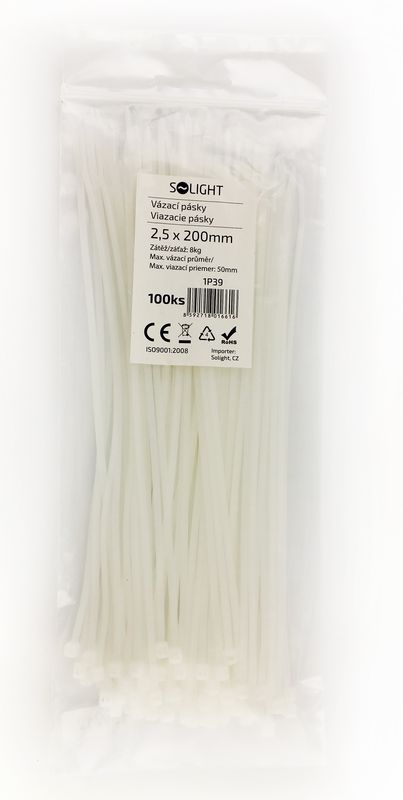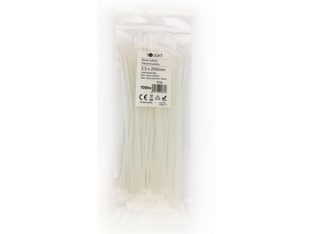 Solight viazacie nylonové pásky, 2,5 x 200mm, natural, 100ks