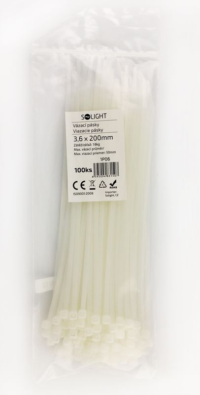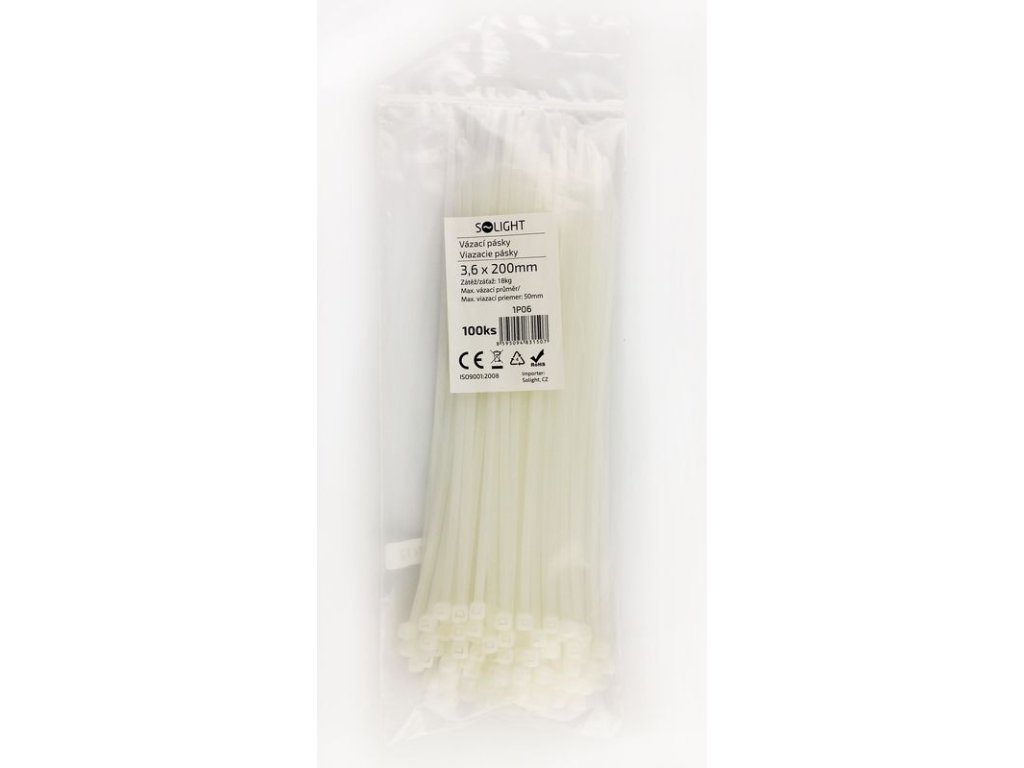 Solight viazacie nylonové pásky, farba natural, 100ks, 3,6 x 200mm