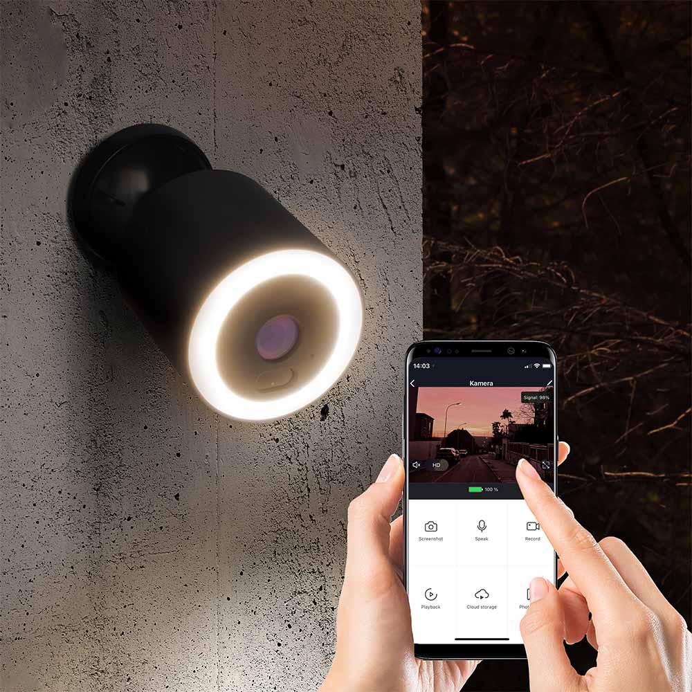 S vonkajšou kamerou 1D80 môžete kontrolovať svoj dom a majetok takmer odkiaľkoľvek. Jednoducho vytiahnite telefón alebo tablet a sledujte svoj dom kdekoľvek, kde ste pripojení na internet. Kamera je napájaná zo zdroja energie, takže ponúka živé vysielanie 24 hodín denne, 7 dní v týždni. Alebo prijímajte upozornenia na mobilnom zariadení v okamihu, keď kamera zaznamená pohyb, a prezerajte si videozáznam v rozlíšení 1080p Full HD. A to navyše s dvoma režimami osvetlenia - klasickým infračerveným nočným videním alebo výkonným 500 lm osvetlením LED.