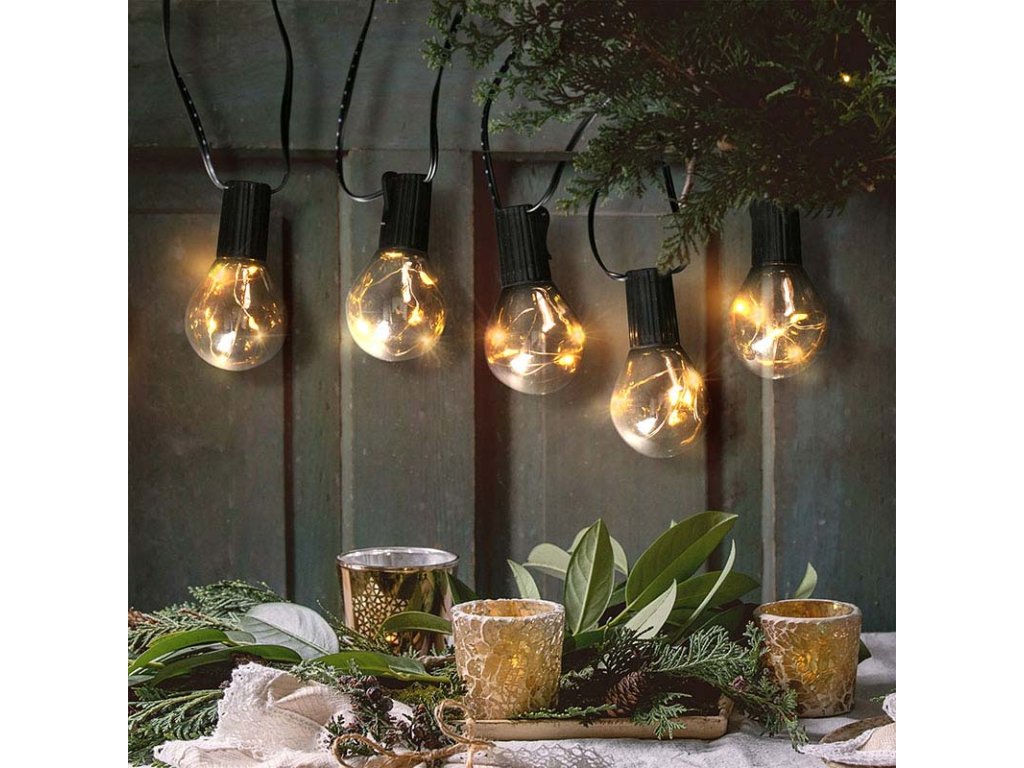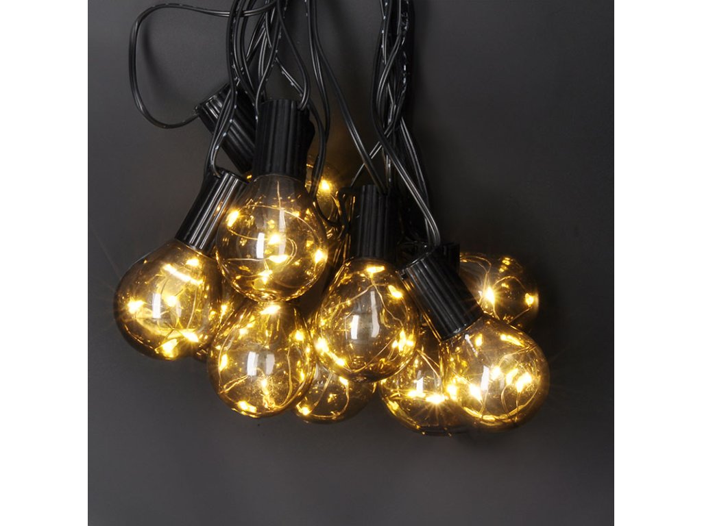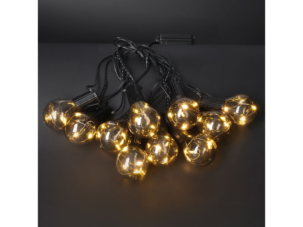 Elegantná vonkajšia dekoratívna reťaz so žiarovkami LED vytvára štýlové osvetlenie pre záhrady, terasy alebo altánky. Reťaz obsahuje 10 žiaroviek a celkovo 50 LED diód s teplým bielym svetlom, ktoré v kombinácii so vzhľadom klasických žiaroviek vytvárajú útulnú atmosféru. Vďaka dĺžke svietiacej časti 2,7 m a napájaciemu káblu 0,5 m možno dekoráciu ľahko umiestniť podľa potreby.