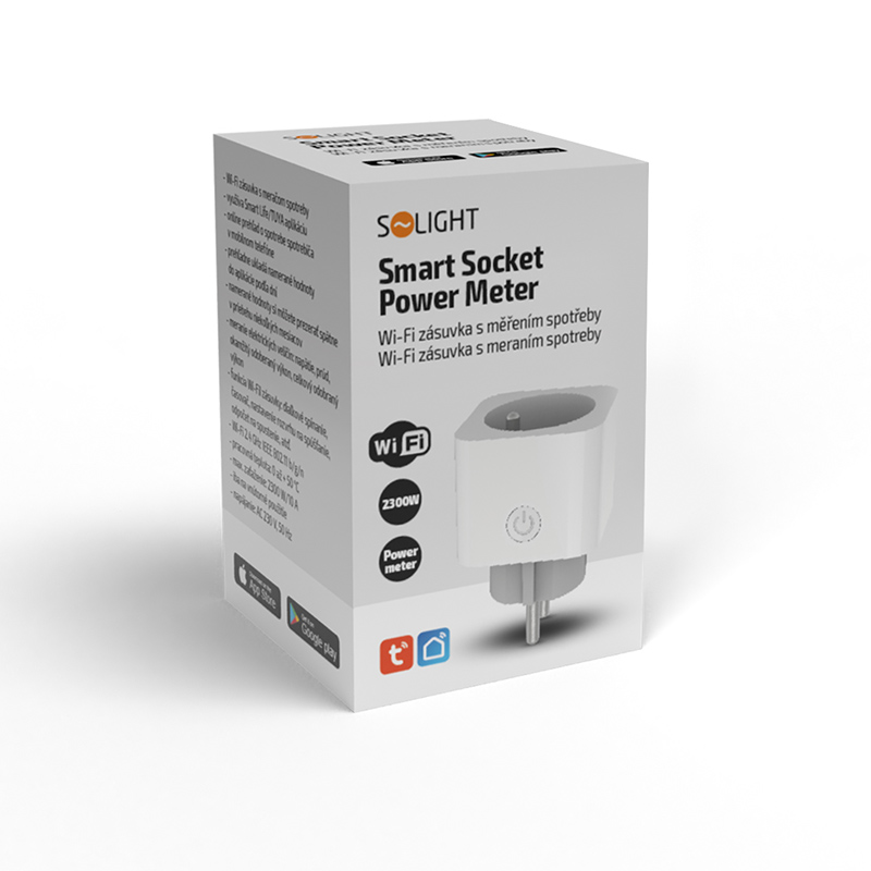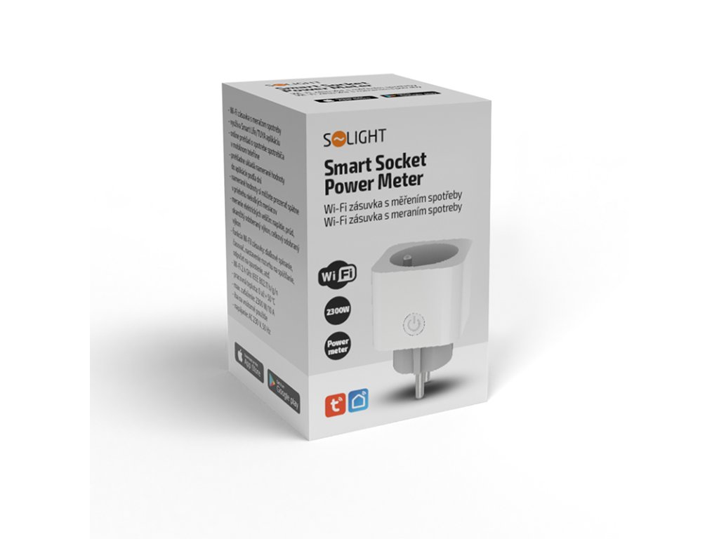 WIFI zásuvka s meračom spotreby využíva aplikáciu Smart Life/TUYA na online monitorovanie spotreby spotrebičov na vašom mobilnom telefóne. Odčítané hodnoty sa ukladajú do aplikácie po jednotlivých dňoch a je možné si ich prezerať spätne po mesiacoch. Meria elektrické veličiny, ako je napätie, prúd, okamžitý a celkový odber energie. Ponúka diaľkové spínanie, časovač, nastavenie plánu spustenia a odpočítavania. Podporuje WiFi 2,4 GHz IEEE 802.11 b/g/n. Prevádzková teplota je 0 až +50 °C, maximálne zaťaženie 2300 W/10 A. Len na vnútorné použitie, napájanie striedavým prúdom 230 V, 50 Hz.
