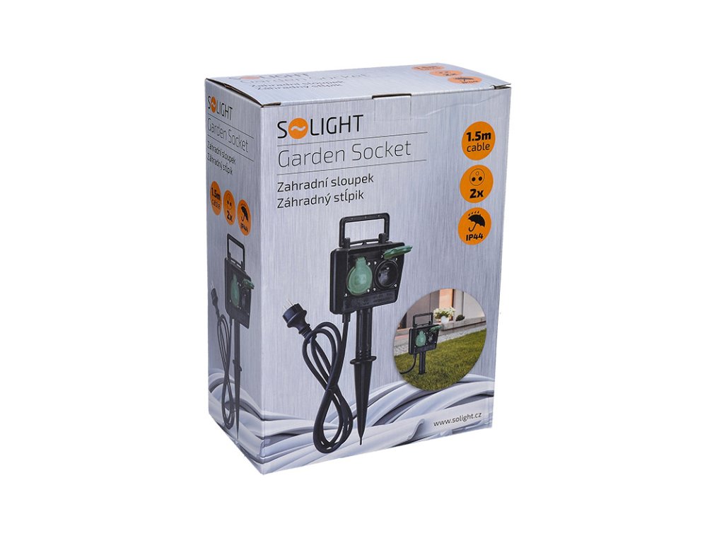 Solight záhradný stĺpik IP44, 2 zásuvky, gumový kábel 1,5m