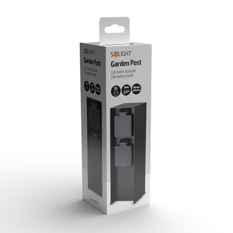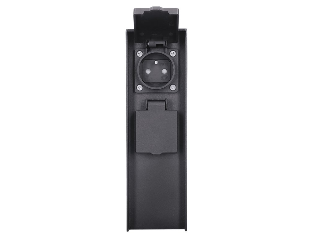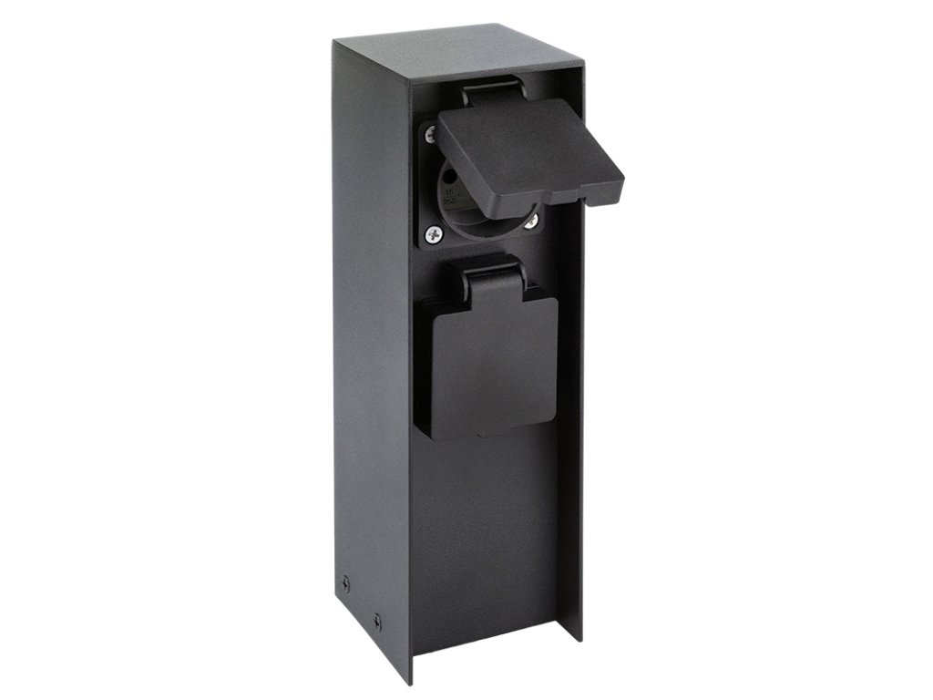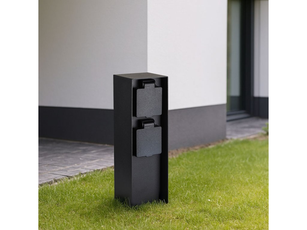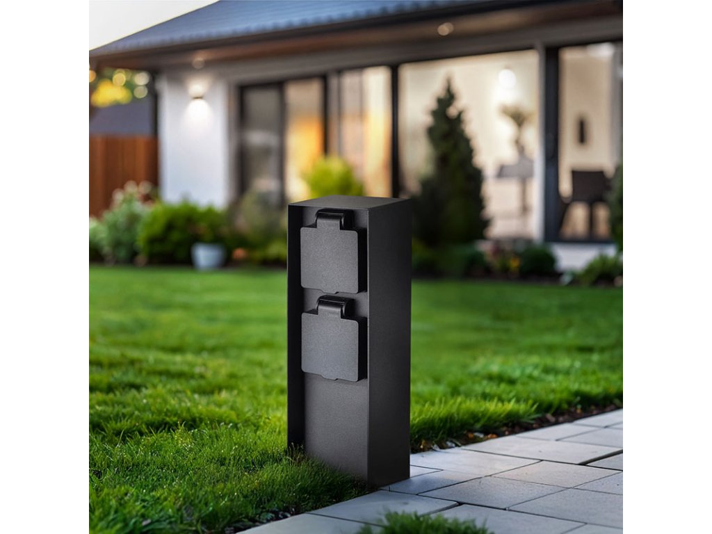 Dve zásuvky s detskými poistkami sú chránené samouzatvárateľnými krytkami, ktoré bránia vniknutiu vlhkosti a nečistôt. Vďaka krytiu IP44 je stĺpik vhodný aj na použitie za dažďa alebo vo vlhšom prostredí. Zásuvky zvládnu záťaž až 3680 W (16 A pri 230V~), čo je ideálne pre vonkajšie osvetlenie, záhradnú techniku aj bežné spotrebiče. Vhodný pre domy, pergoly aj firemné areály.