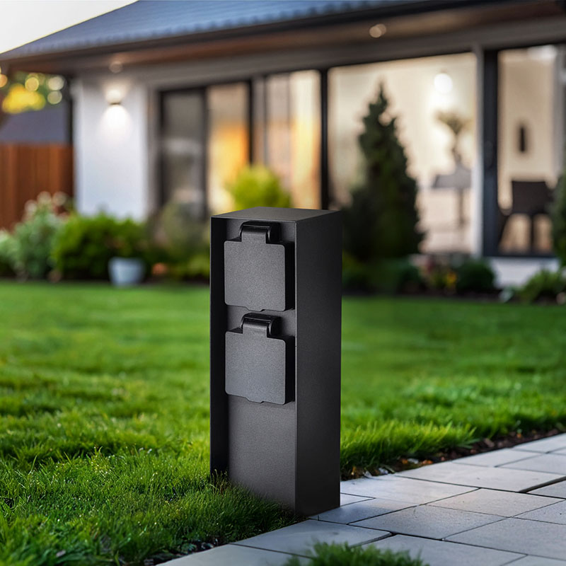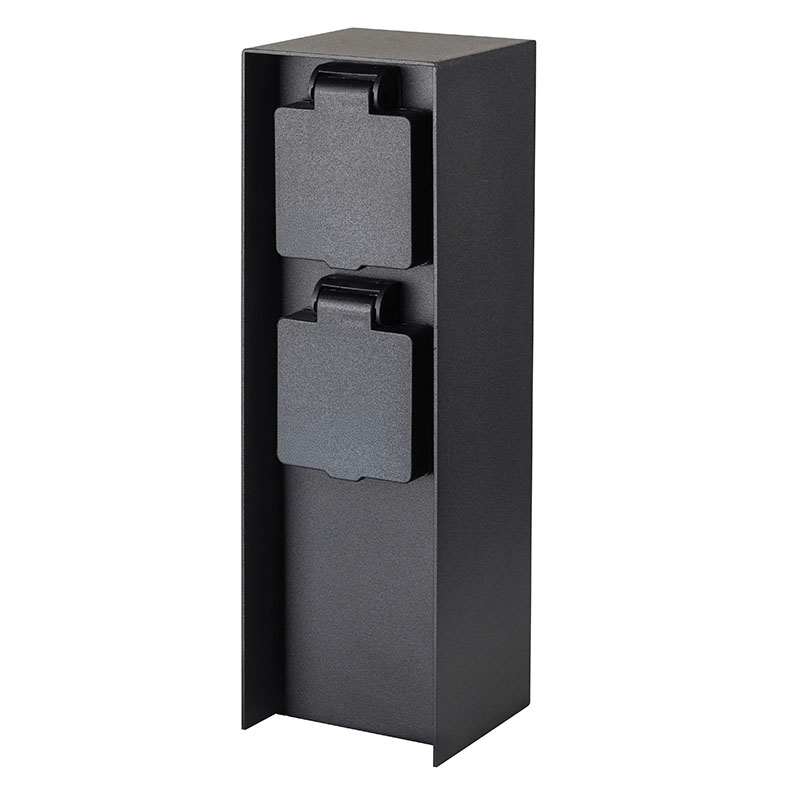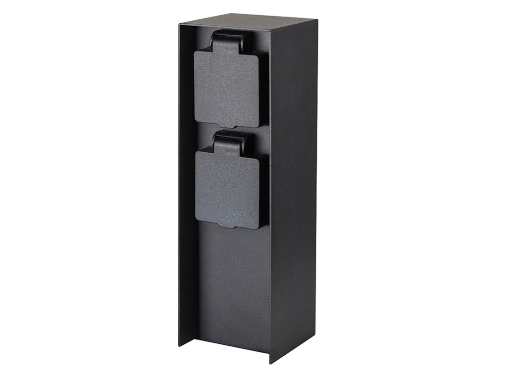 Štýlový elektrický rozvodný stĺpik z tlakovo liateho hliníka je ideálny pre napájanie zariadenia na záhradách, dvoroch alebo príjazdových cestách. Štíhly hranol s precíznym tvarom a matným čiernym povrchom pôsobí moderne a prirodzene zapadne do každého vonkajšieho priestoru.