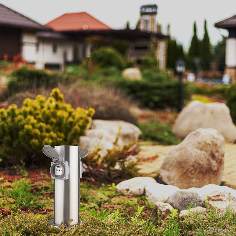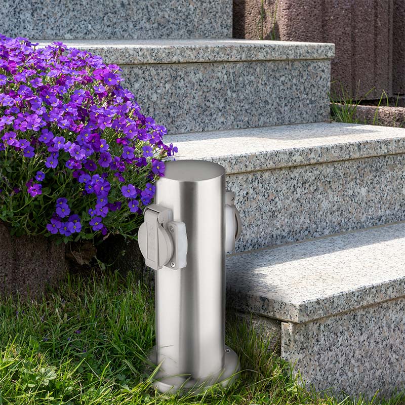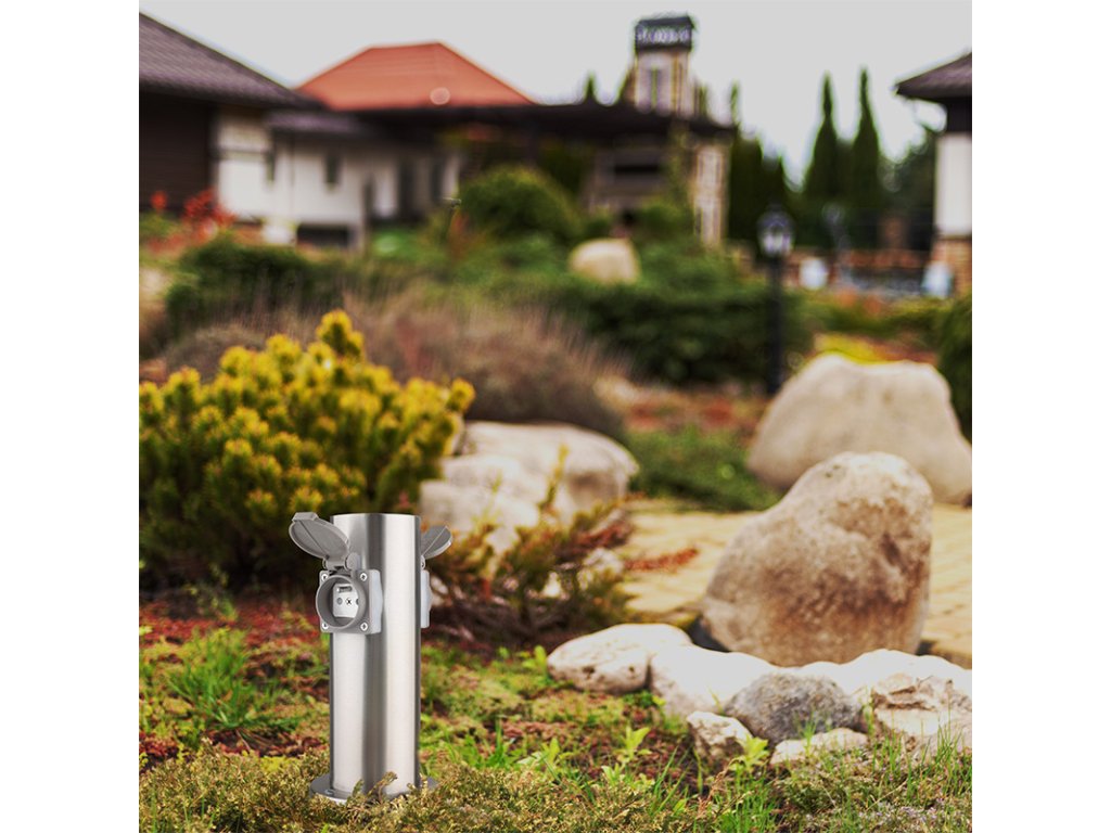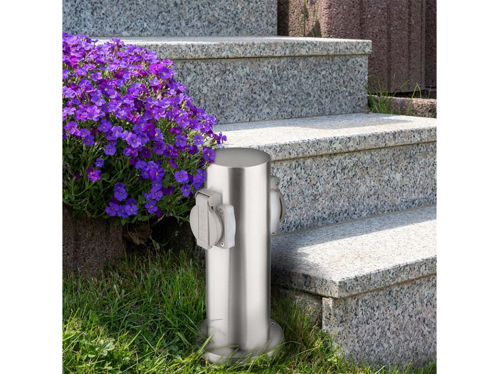 Dve zásuvky s detskými poistkami sú chránené samouzatvárateľnými krytkami, ktoré bránia vniknutiu vlhkosti a nečistôt. Vďaka krytiu IP44 je stĺpik vhodný aj na použitie za dažďa alebo vo vlhšom prostredí. Zásuvky zvládnu záťaž až 3680 W (16 A pri 230V~), čo je ideálne pre vonkajšie osvetlenie, záhradnú techniku ??aj bežné spotrebiče. Vhodný pre domy, pergoly aj firemné areály.