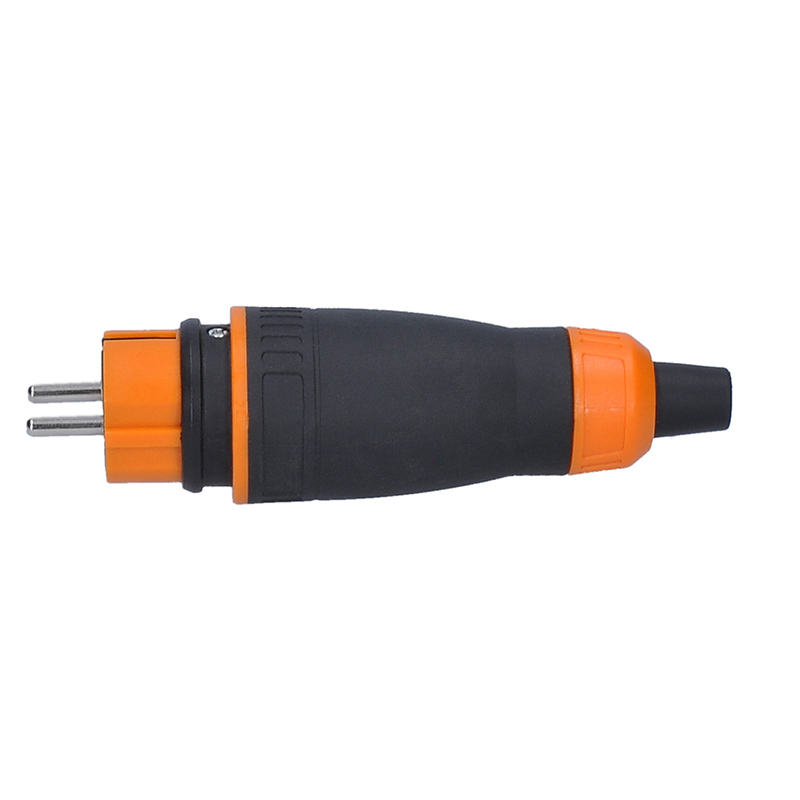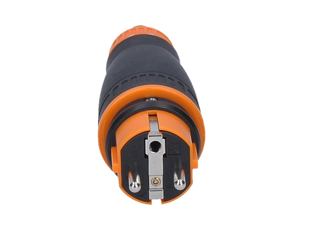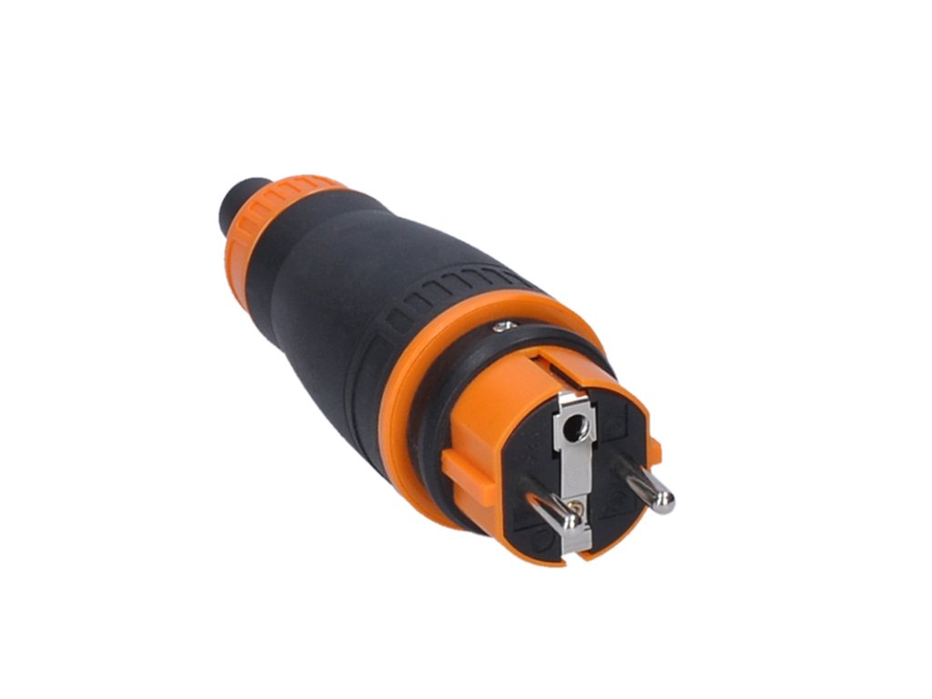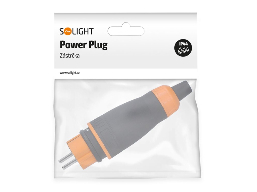Solight zástrčka do vlhka, priama, IP44, čierna-oranžová