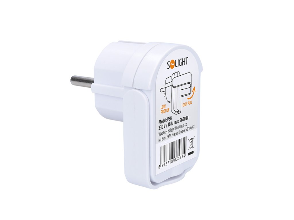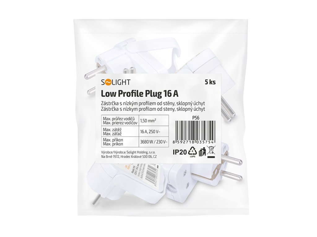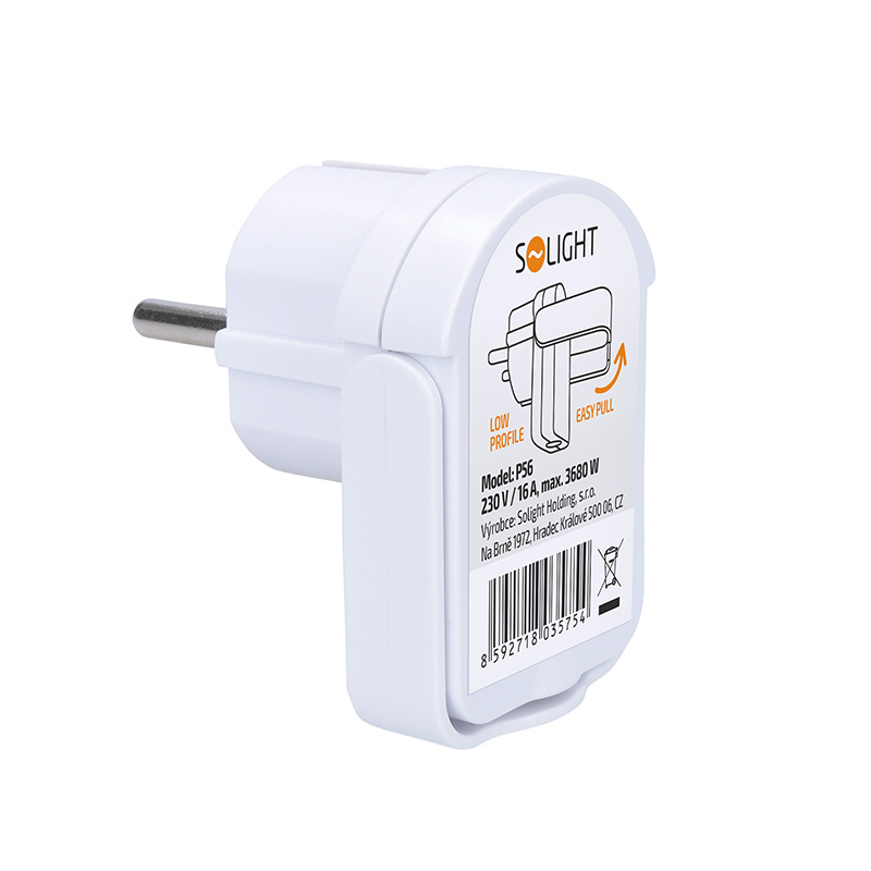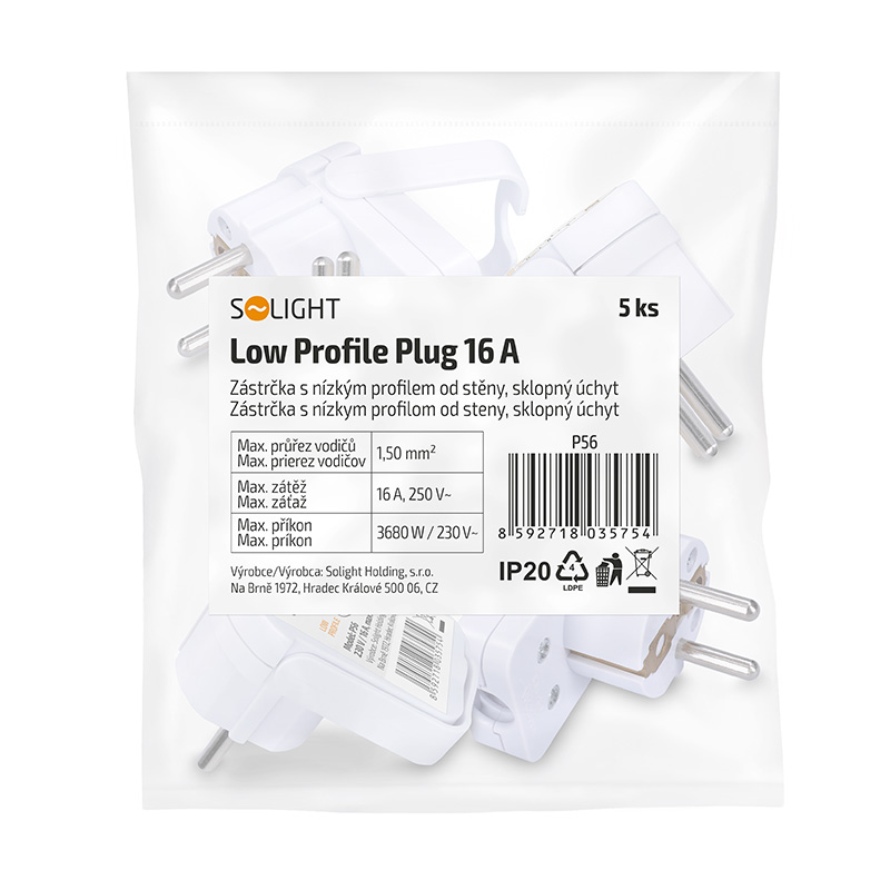 Solight zástrčka uhlová, nízky profil od steny, IP20, biela