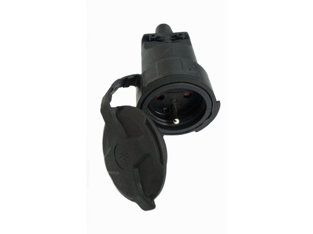 Solight zásuvka gumová do vlhka a prachu, priama, IP65, čierna