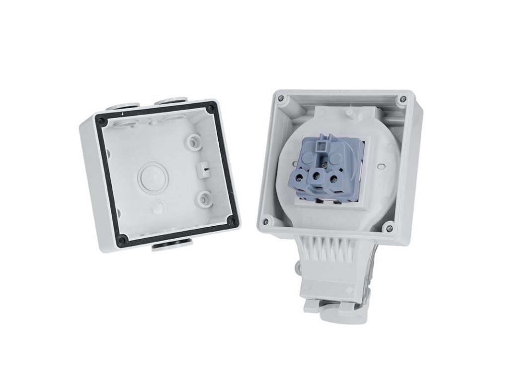 - skrutkovací vstup/výstup 2x M20x1,5; vrátane vodotesných skrutkovacích zátok, na prepojenie s ďalšími zásuvkami alebo inou elektroinštaláciou