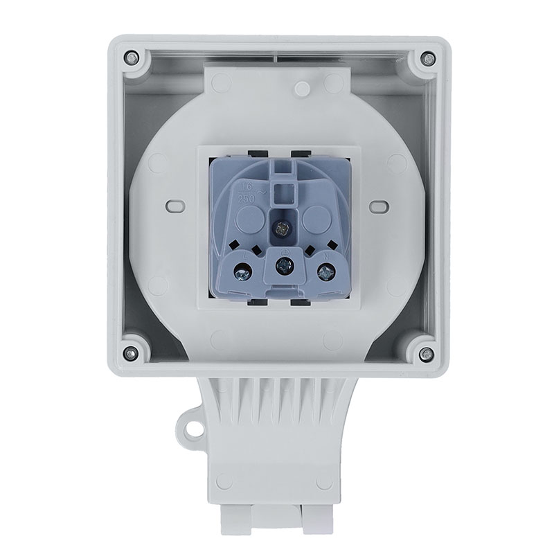 Konštruovaná pre maximálnu záťaž 16A, 3680W pri 230V~. Tri káblové vstupy 2x M20 a 1x M25 dovoľujú pripojiť vodiče až 3x 2,5mm2, prípadne prepojiť s ďalšími zásuvkami alebo inou elektroinštaláciou. Vďaka robustnej konštrukcii a jednoduchému použitiu je zásuvka vhodná pre stavebníctvo, priemyselné prevádzky, poľnohospodárstvo, ale aj pre náročné domáce a záhradné projekty. Bez obáv ju možno používať v prevádzkových teplotách -20 °C až +60 °C.