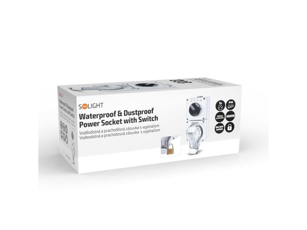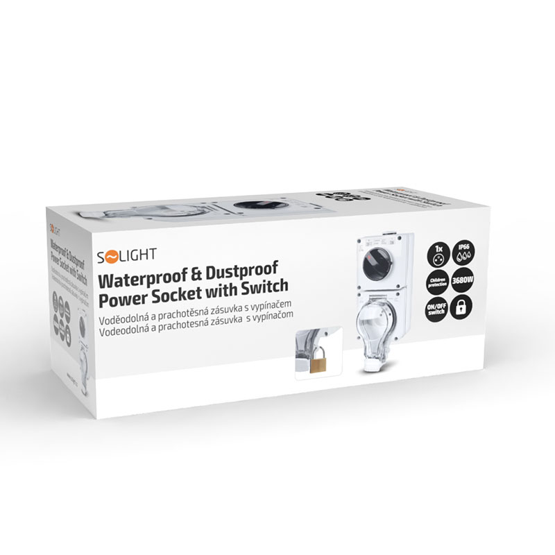 Solight zásuvka IP66 s vypínačom, vodotesná a prachotesná