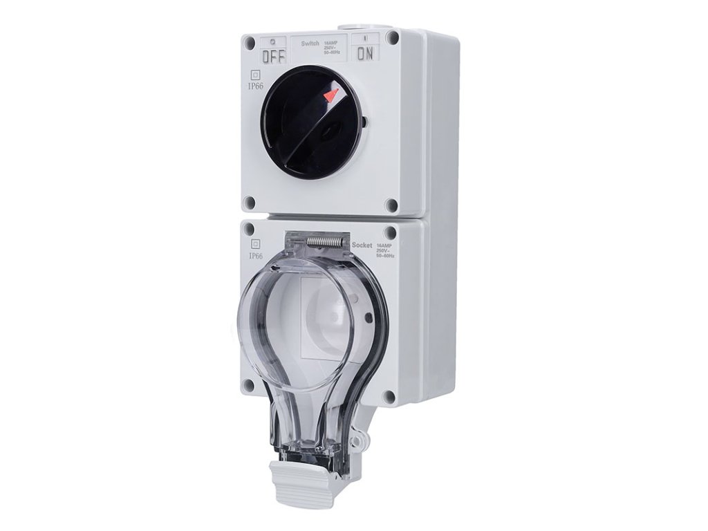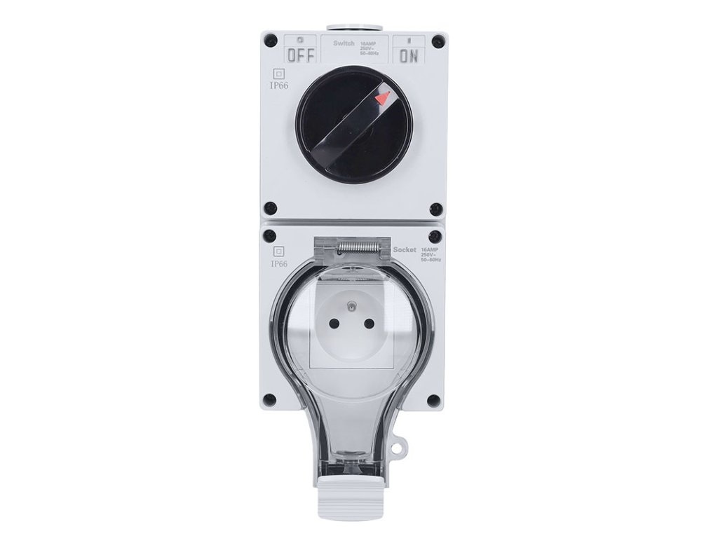 Profesionálna zásuvka 230V~/16A s vypínačom a ochranou IP66