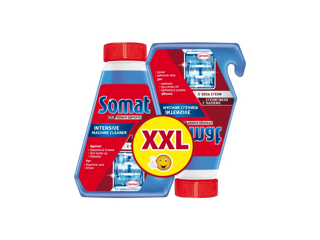 Somat intenzivní čistič myčky odstraňuje vodní kámen a mastné usazeniny v myčce, na ostřikovacích ramenech a filtru – pro hygienickou čistotu. Při pravidelném používání (jednou za 3 měsíce). lze prodloužit životnost Vaší myčky. Praktická lahev Somat s háčkem je vhodná pro všechny myčky. Při používání čističe myčky prosím nepřidávejte prostředek na nádobí, ani nenechávejte nádobí v myčce.
