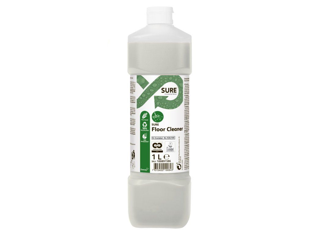 SURE Floor Cleaner je součástí unikátní řady založené na rostlinné bázi, 100% biologicky odbouratelné profesionální čisticí prostředky splňující potřeby pro každodenní čištění. SURE Floor Cleaner je koncentrovaný málo pěnivý čistící prostředek na denní čištění všech voděodolných tvrdých podlah. Prostředek je vhodný na všechny typy podlah s voděodolným povrchem. Doporučuje se pro všechny metody čištění, včetně čištění pomocí kbelíku nebo s pomocí podlahového automatu.