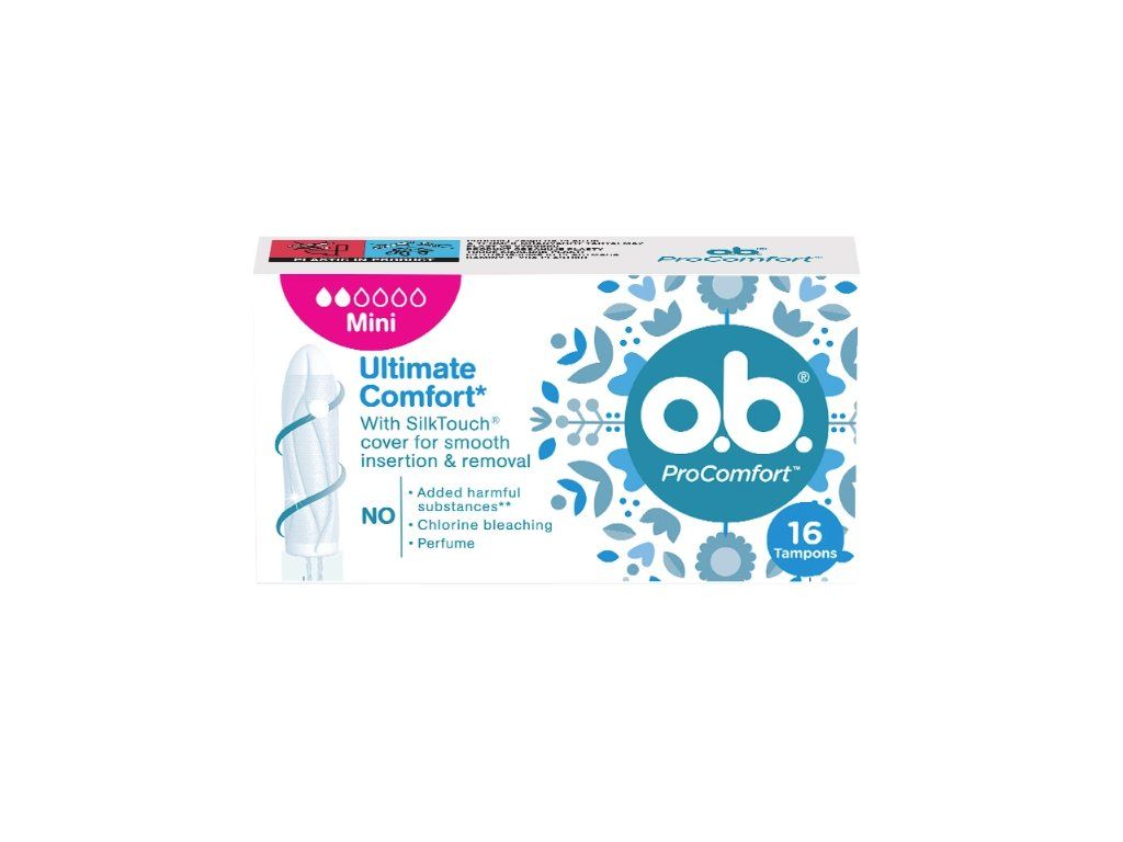 Tampony o.b.® ProComfort™ s technologií Dynamic Fit™ a s jedinečným hedvábným povrchem SilkTouch™ jsou navrženy pro maximální pohodlí a nejspolehlivější ochranu, jaká kdy byla v rámci portfolia tamponů o.b.® nabízena. Jejich hladký povrch umožňuje jednoduché zavádění, a díky tomu je použití tamponů o.b.® ProComfort™ velmi snadné a pohodlné i ve dnech se slabým krvácením nebo pokud s používáním tamponů teprve začínáte.